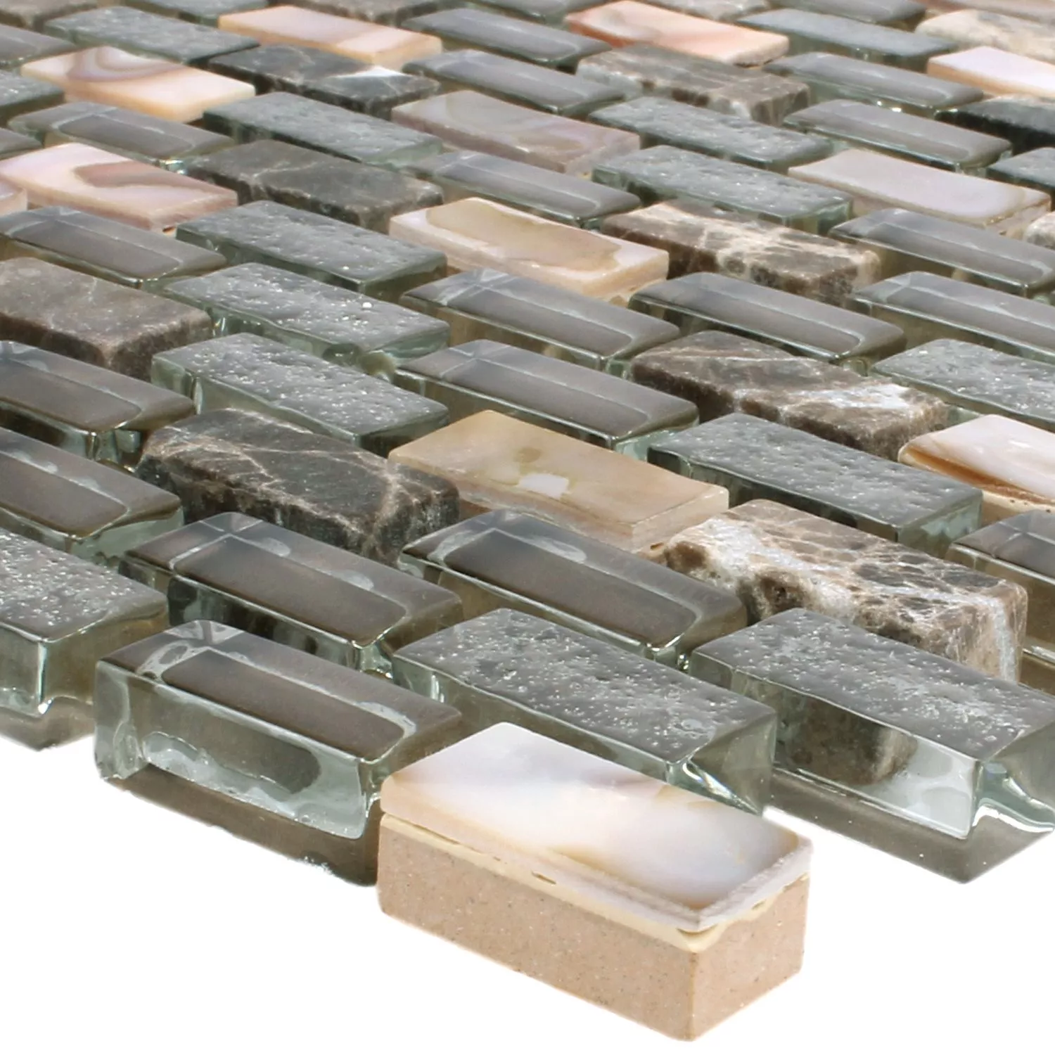 Muestra Azulejos De Mosaico Concha Cristal Piedra Natural Jasmina Marrón Oscuro
