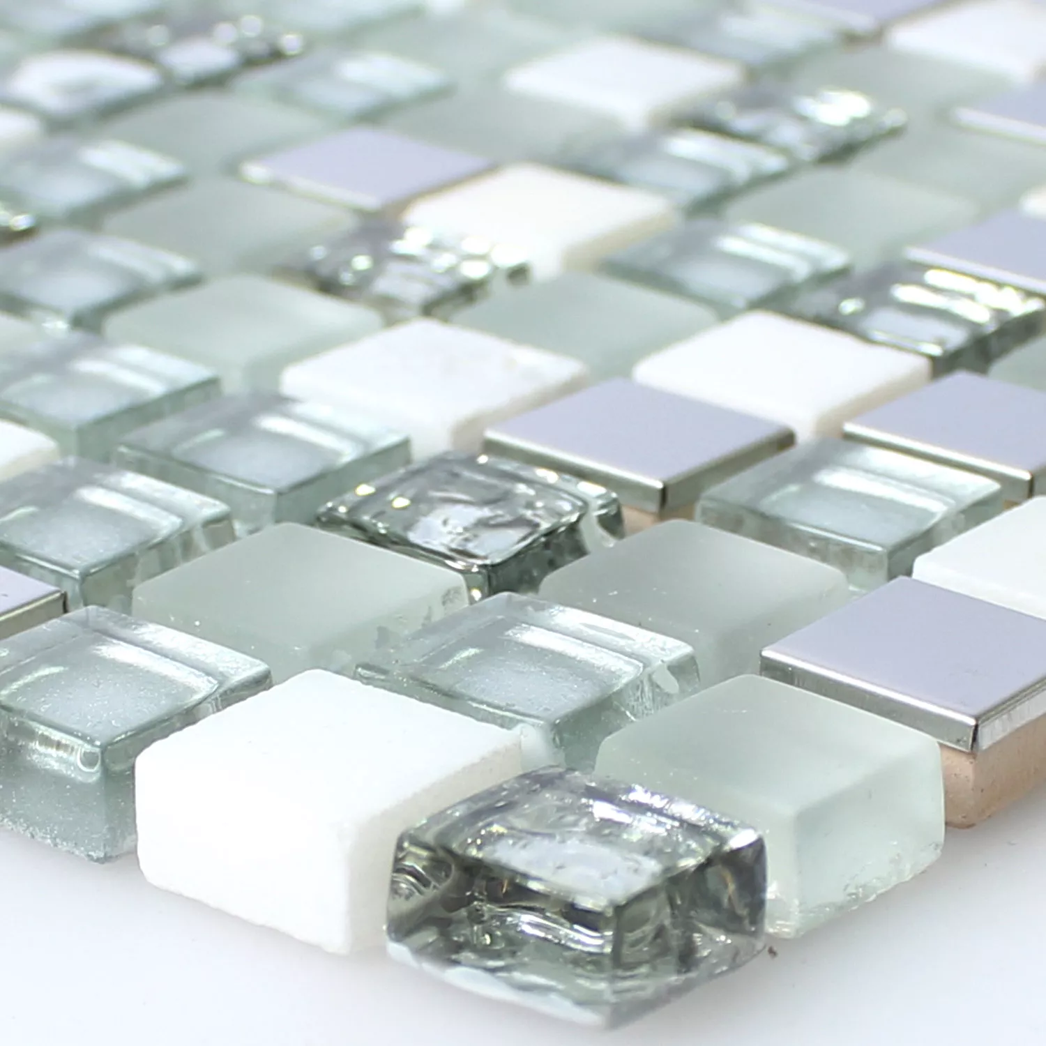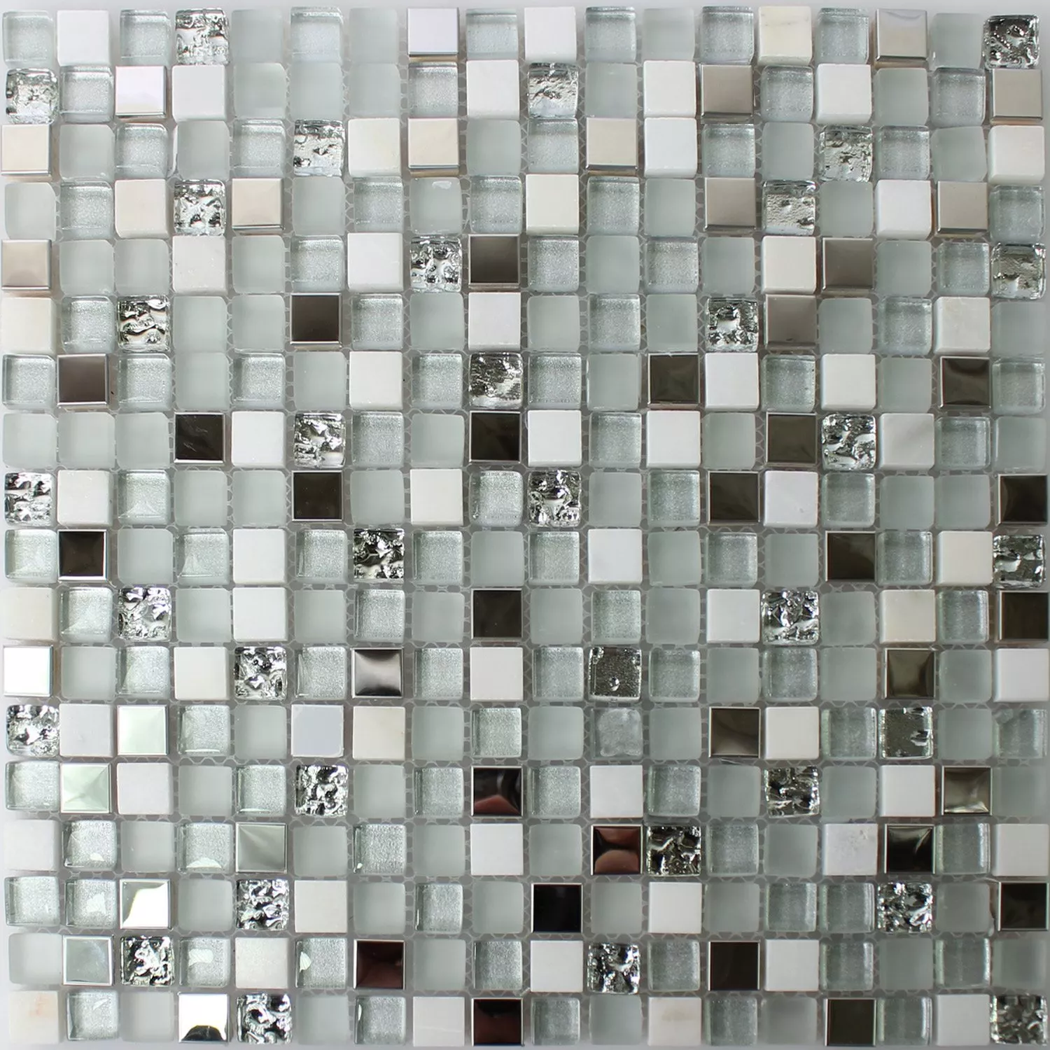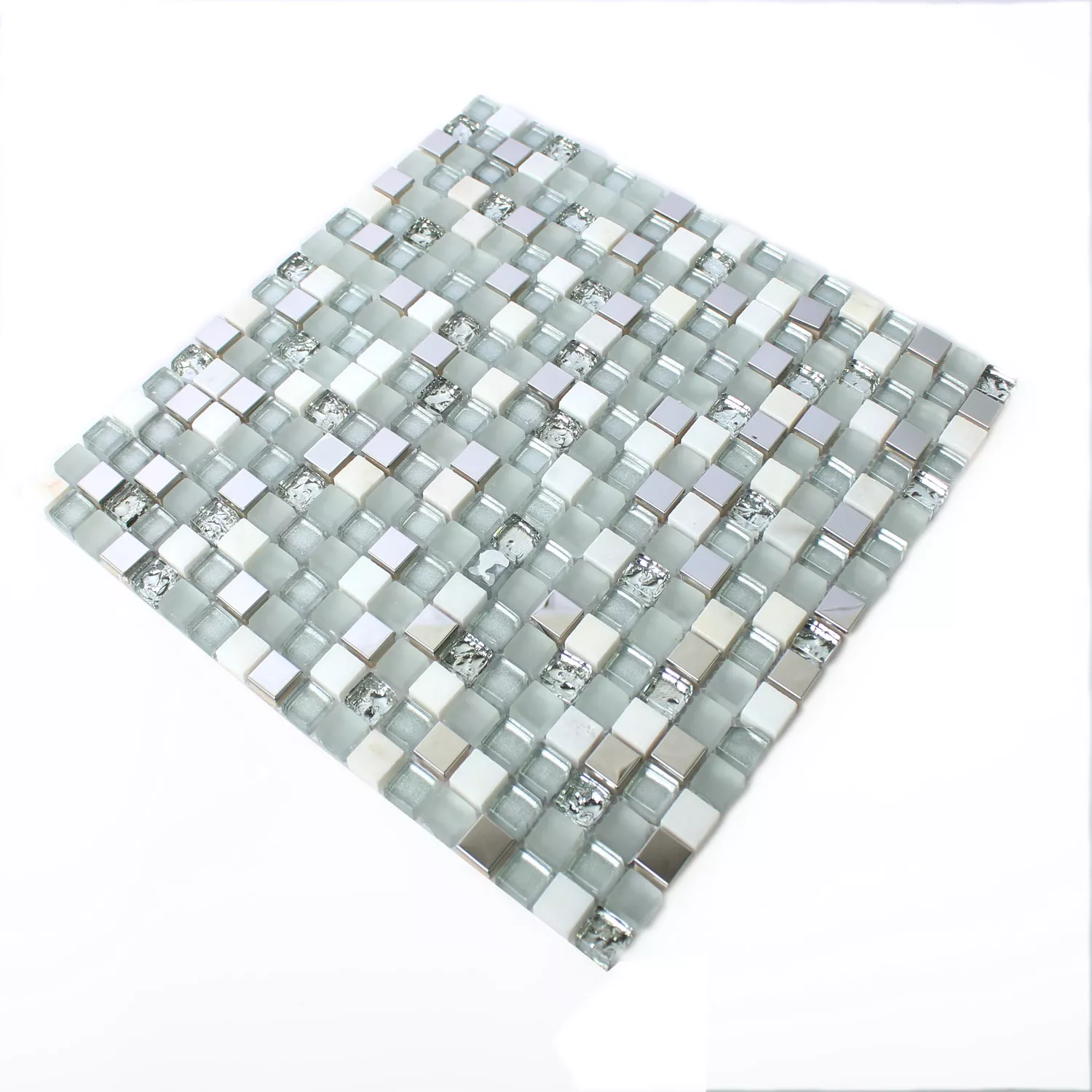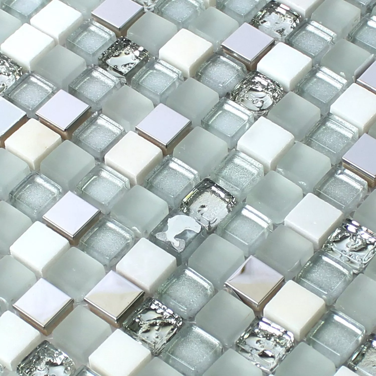 Muestra Azulejos De Mosaico Cristal Acero Inoxidable Piedra Natural Blanco Plateado
