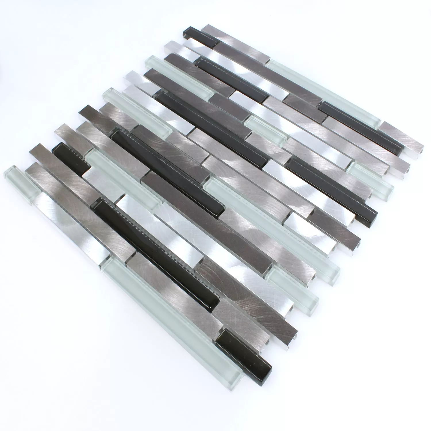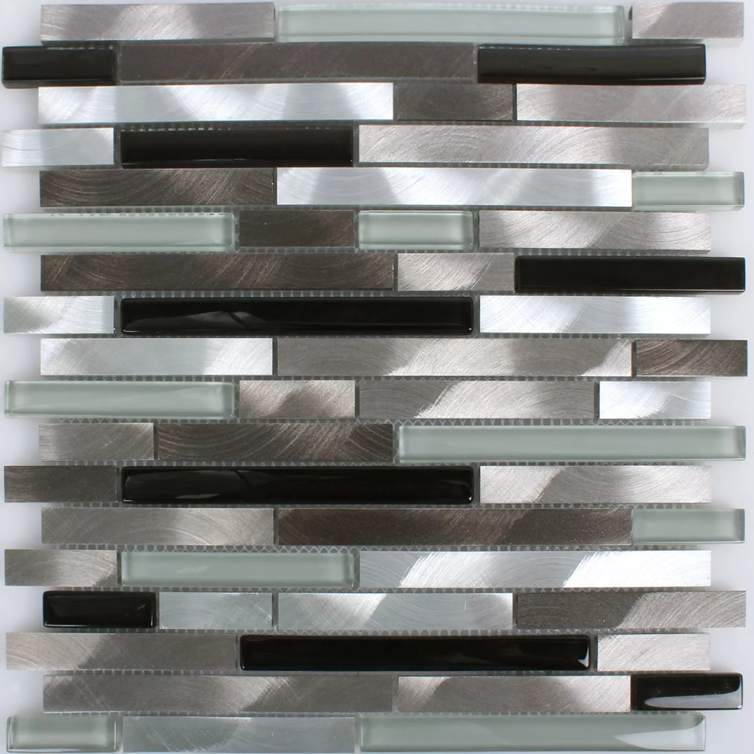 Muestra Azulejos De Mosaico Cristal Alu Marrón Negro Blanco Plateado