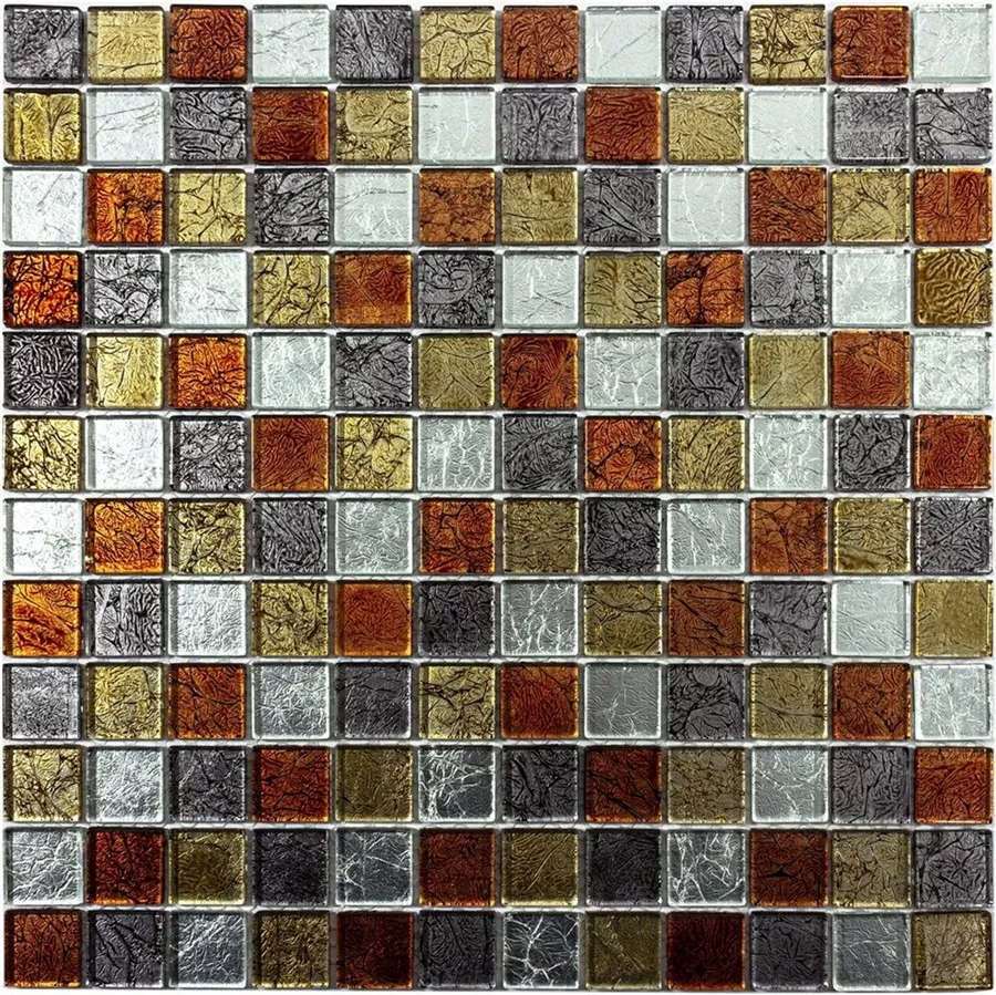 Muestra Azulejos De Mosaico Cristal Bonnie Cristal Estructura Oro Plateado Rojo