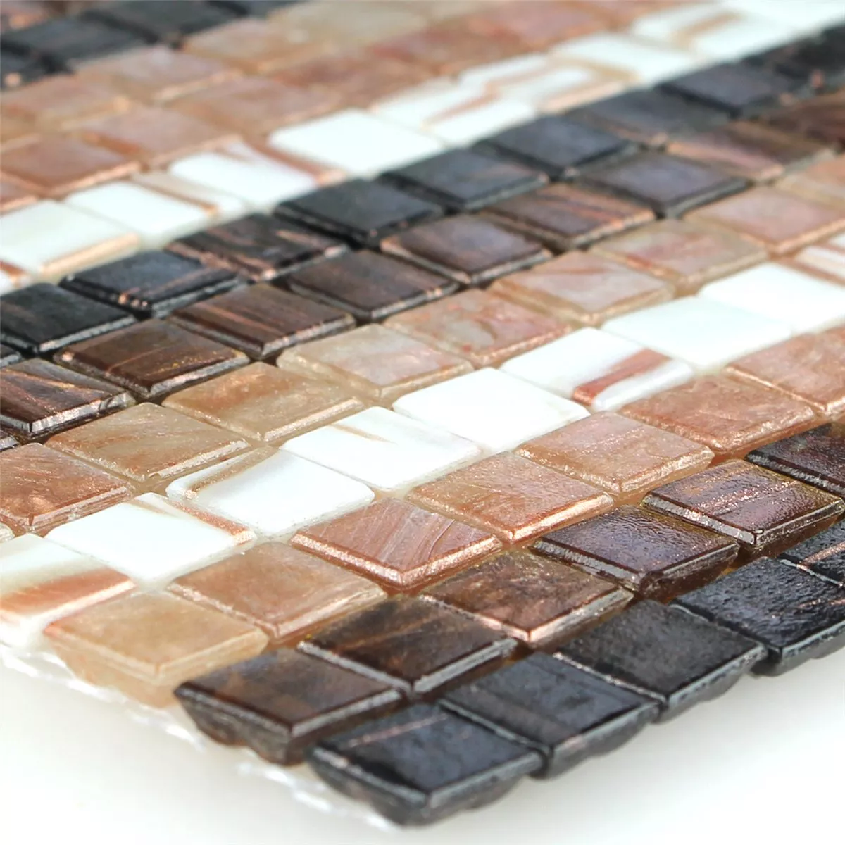 El mosaico de vidrio , en negro, marrón, beige, blanco y acabado superficial mate efecto dorado, tiene un tamaño mate de 32,5x30,5cm y un tamaño de piedra de 1x1cm. El grosor de cada piedra es de 0,4 cm.