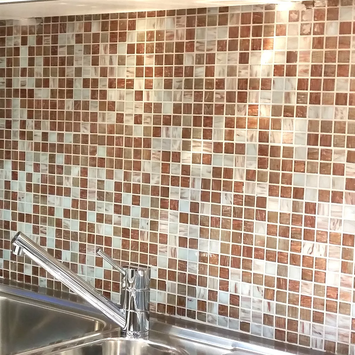 Muestra Azulejos De Mosaico Cristal Oro Star Efecto Blanco Bronce