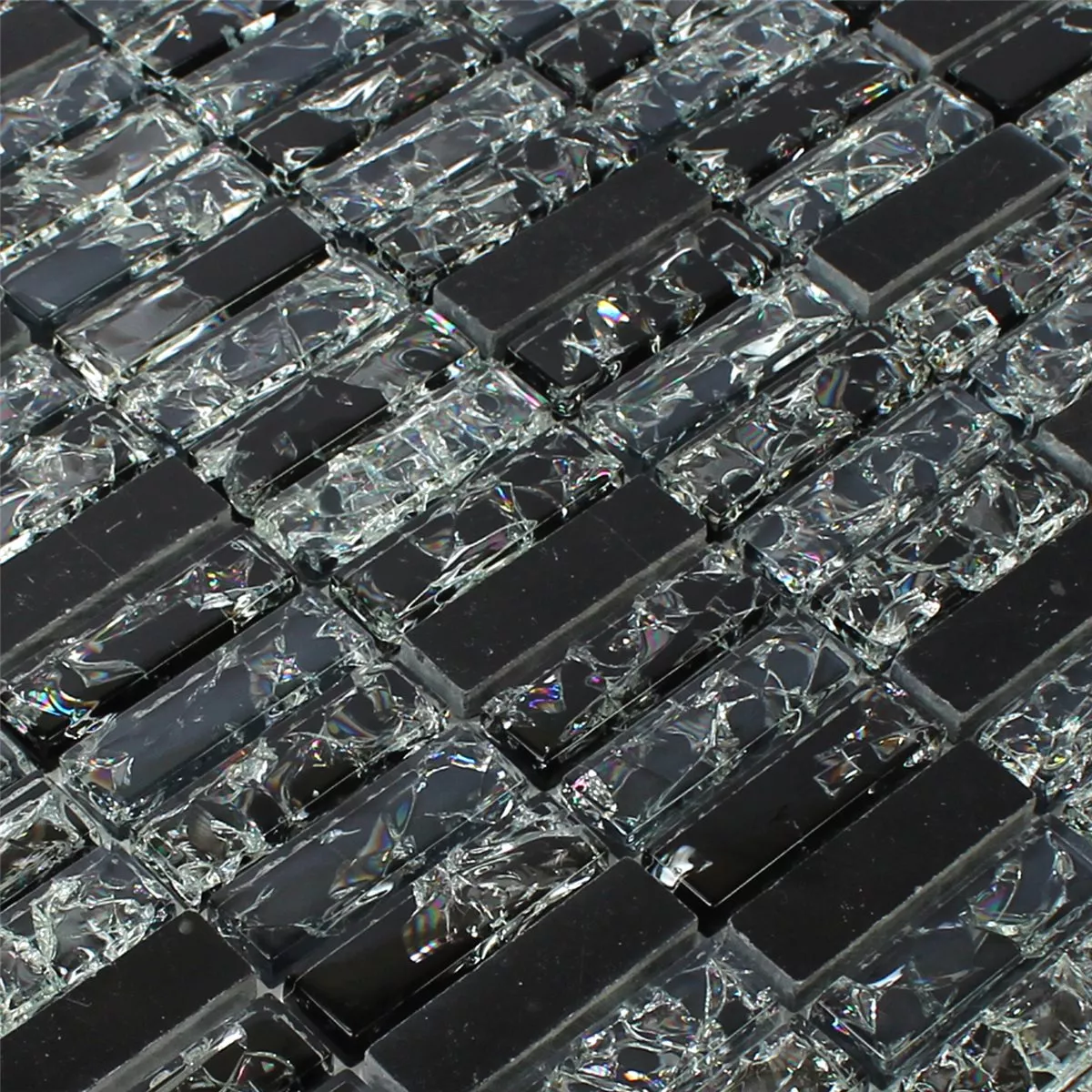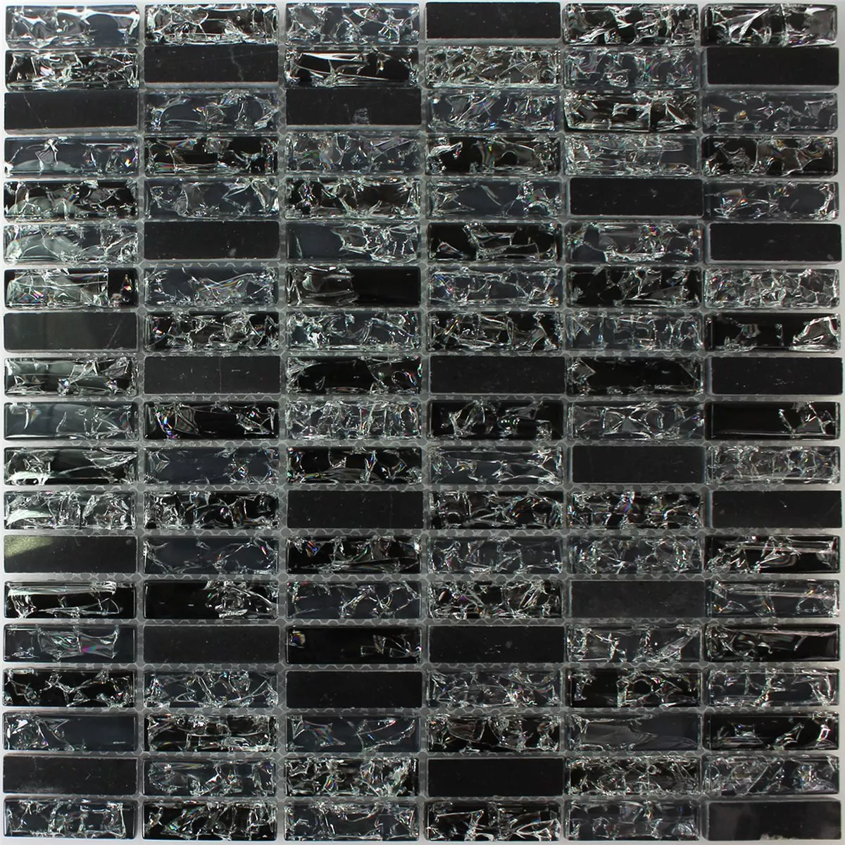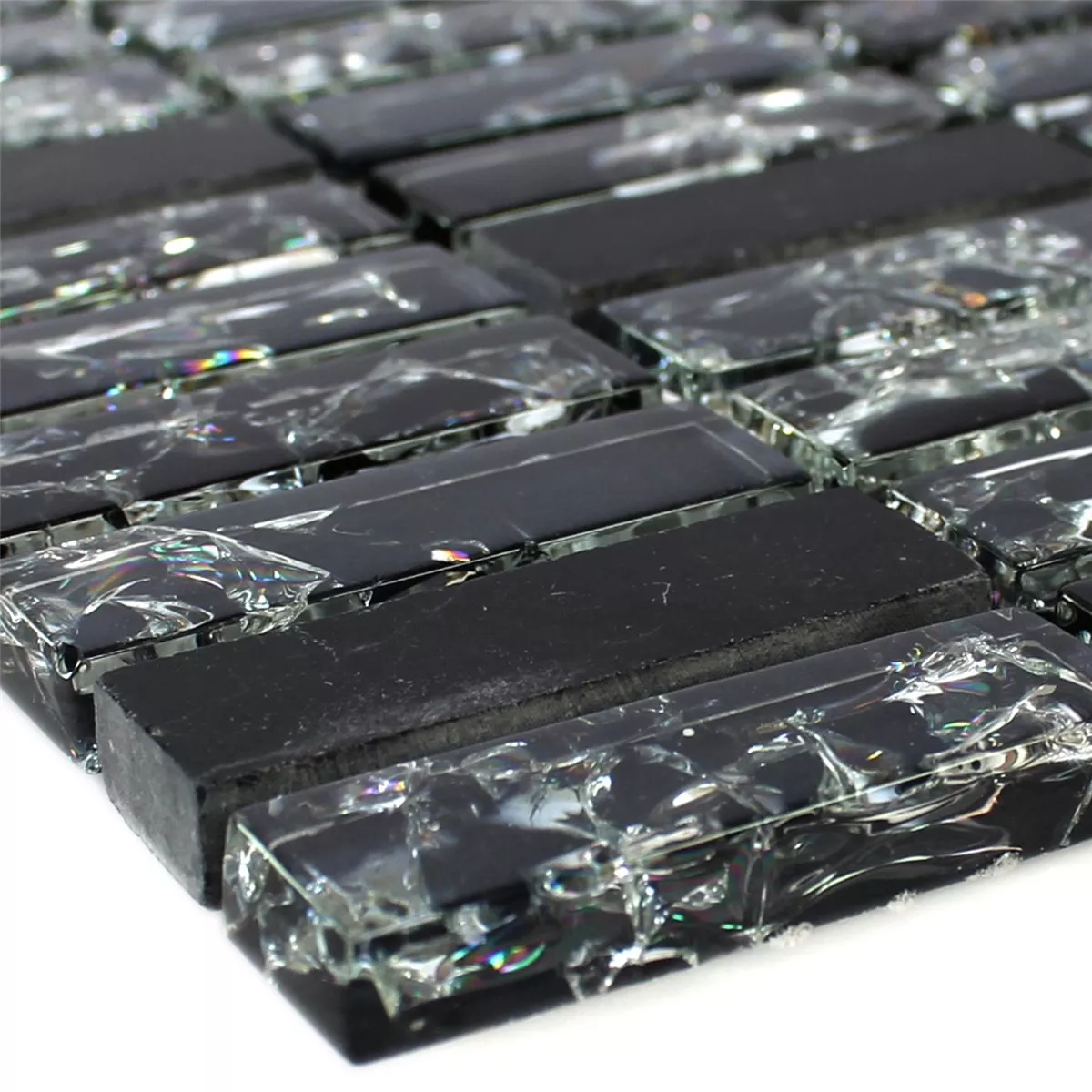 Muestra Azulejos De Mosaico Cristal Piedra Natural Palillos Vidrios Rotos Negro
