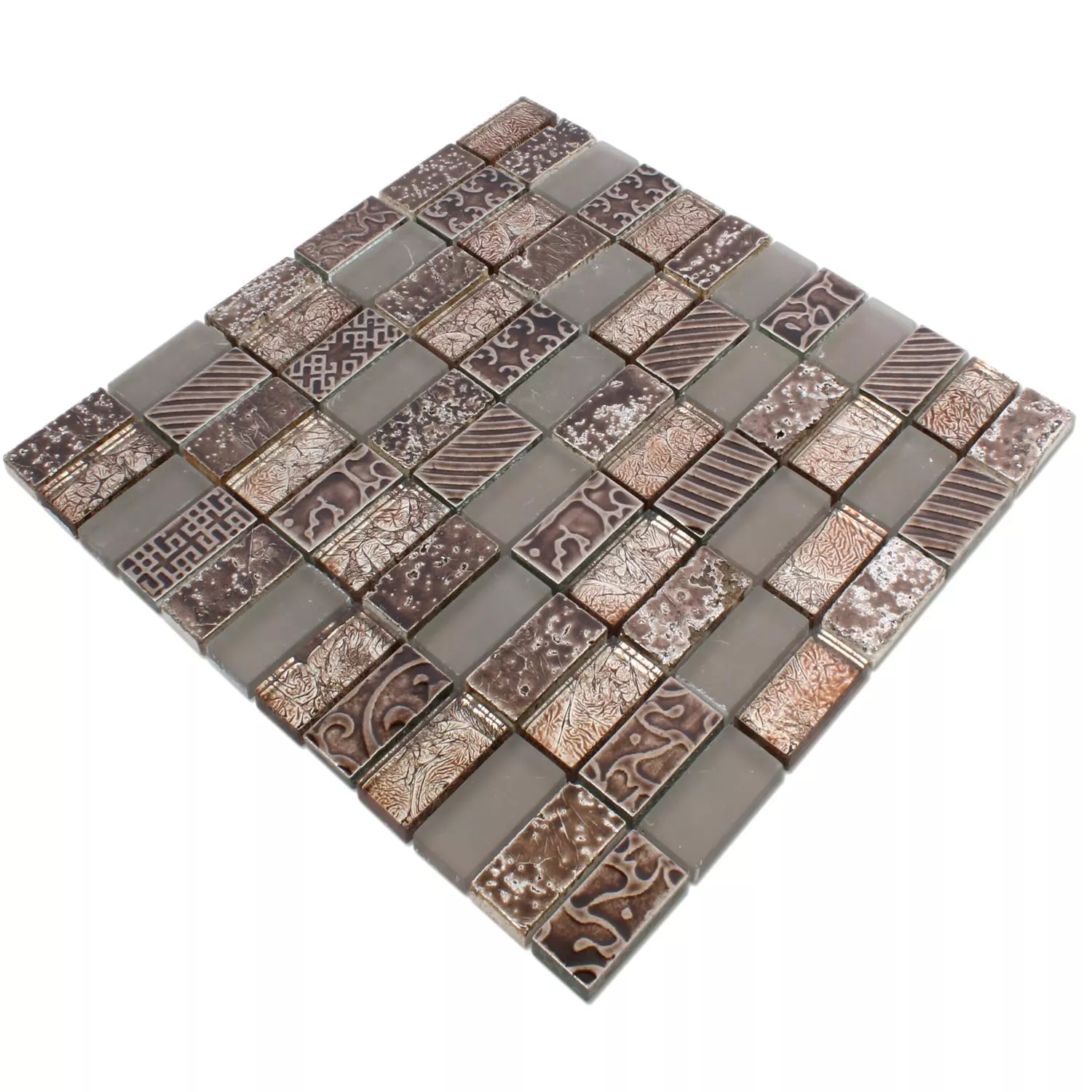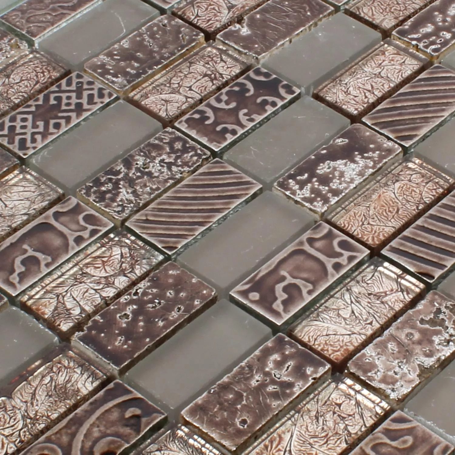 Muestra Azulejos De Mosaico Cristal Piedra Natural Piroshka Marrón