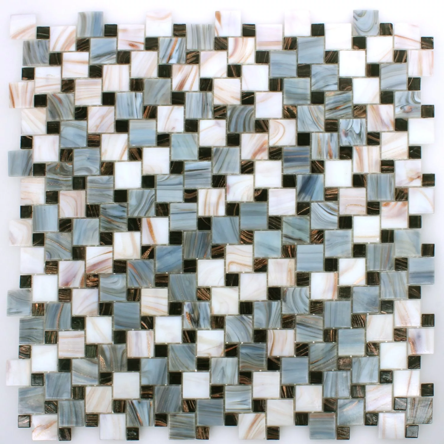 Muestra Azulejos De Mosaico Cristal Tahiti Gris Blanco