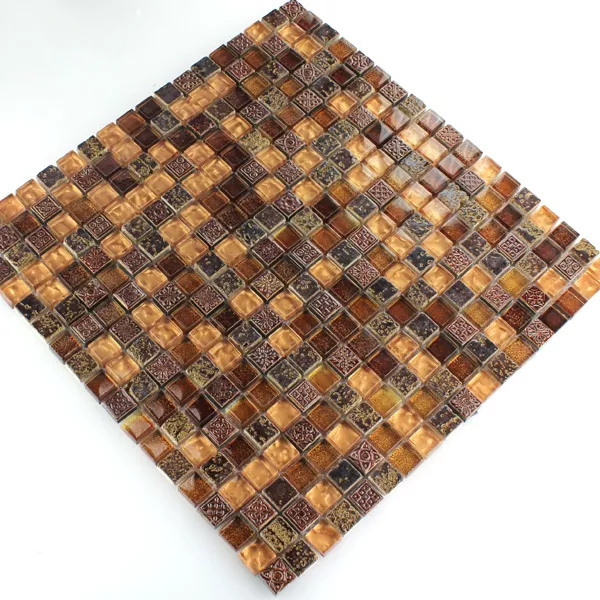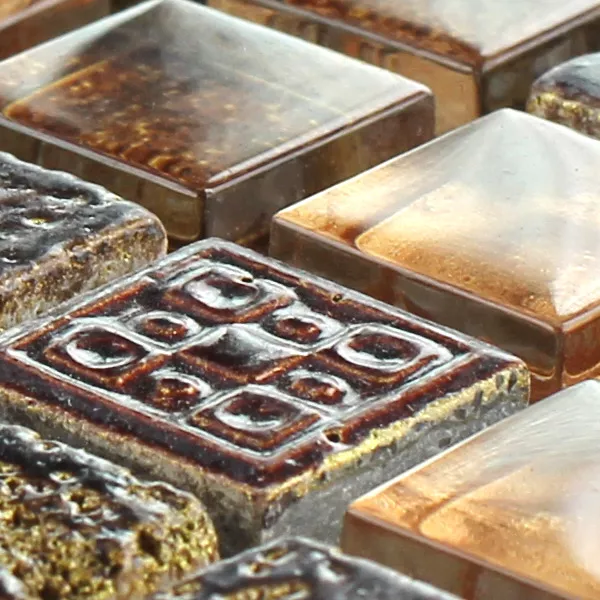 Muestra Azulejos De Mosaico Escimo Cristal Piedra Natural Mezcla Marrón Oro