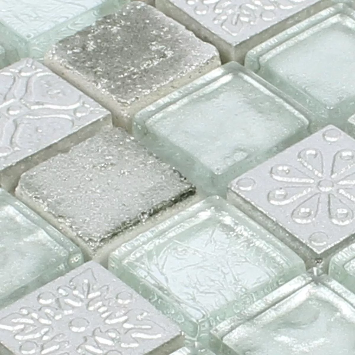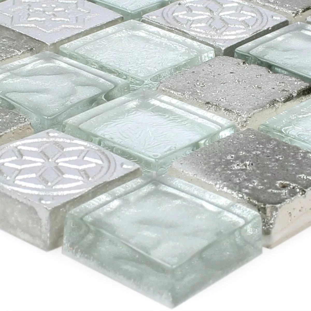 Los mosaicos modernos Georgia Glas Naturstein Mix en plata impresionan con su mezcla especial de mosaicos de piedra natural de alta calidad y elegante mosaico de vidrio. El tamaño de la piedra es de 23x23 mm con un espesor de 8 mm. Una alfombra tiene el tamaño de 30x30cm. Con la mezcla de materiales de mosaico de vidrio y baldosas de piedra natural, los revestimientos transforman todas las estancias en un ambiente extraordinario y acogedor. Gracias a la mezcla de materiales, la superficie de las baldosas es tanto mate como brillante, por lo que se pueden establecer acentos individuales impresionantes.