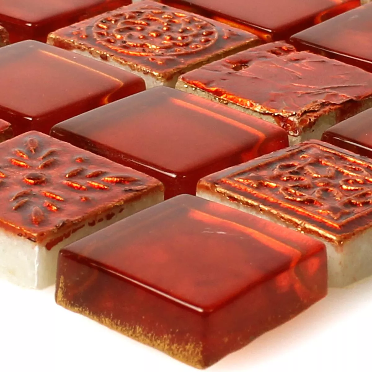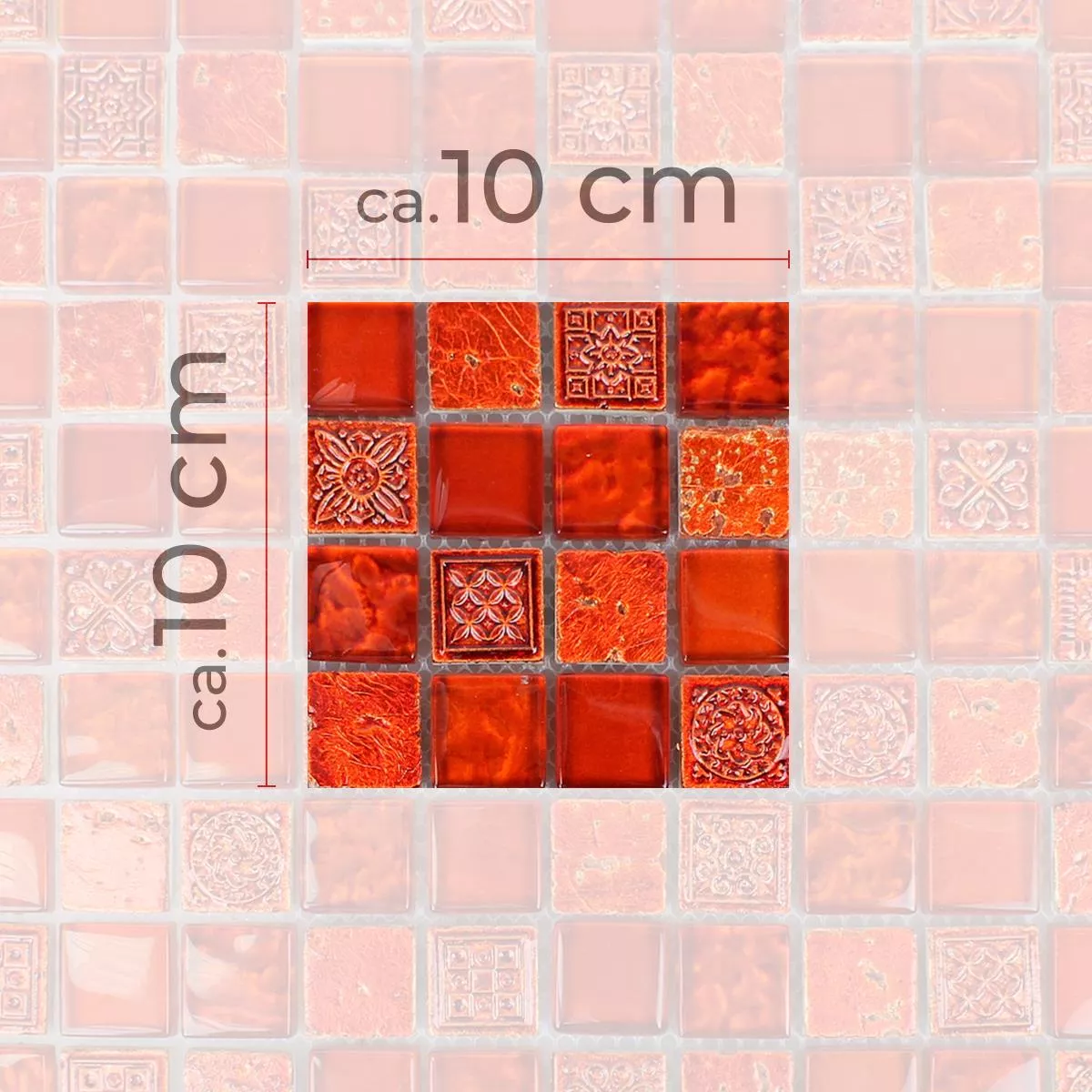 Los mosaicos modernos Georgia Glas Naturstein Mix en rojo impresionan con su mezcla especial de mosaicos de piedra natural de alta calidad y elegante mosaico de vidrio. El tamaño de la piedra es de 23x23 mm con un espesor de 8 mm. Una alfombra tiene el tamaño de 30x30cm. Con la mezcla de materiales de mosaico de vidrio y baldosas de piedra natural, los revestimientos transforman todas las estancias en un ambiente extraordinario y acogedor. Gracias a la mezcla de materiales, la superficie de las baldosas es tanto mate como brillante, por lo que se pueden establecer acentos individuales impresionantes.