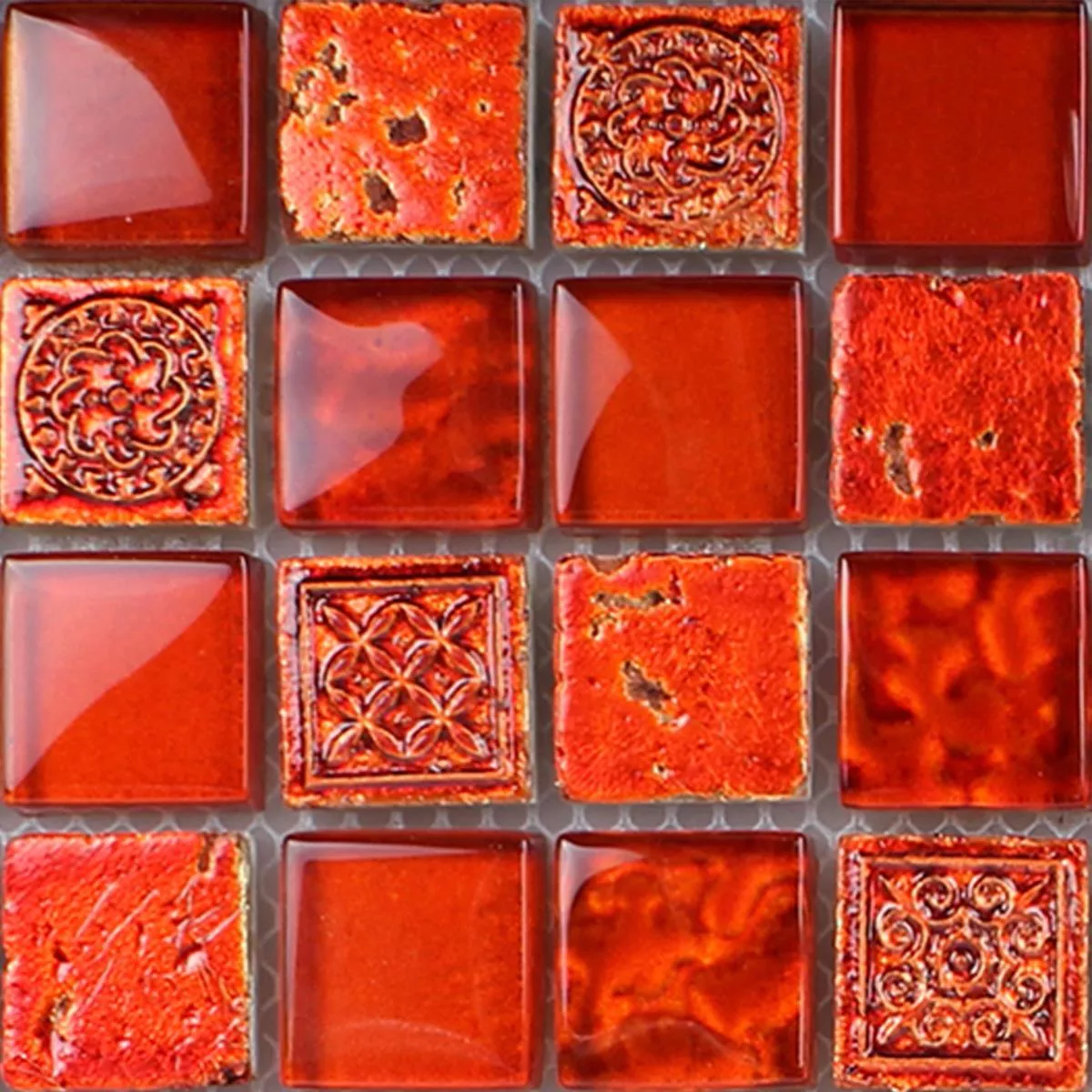 Muestra Azulejos De Mosaico Georgia Cristal Piedra Natural Mezcla Rojo