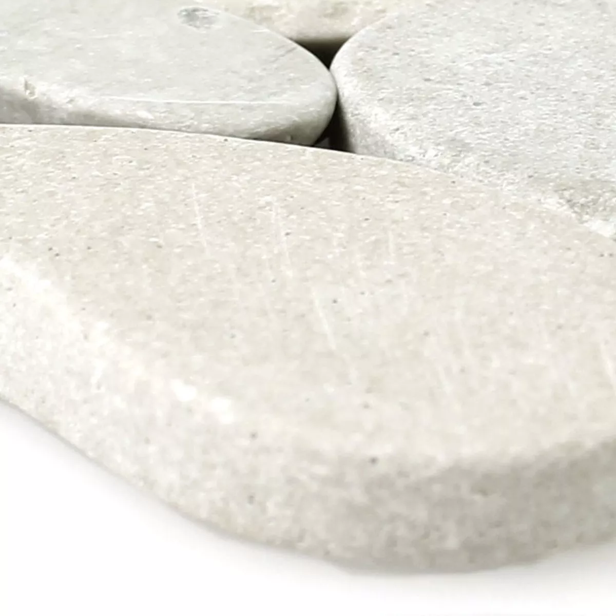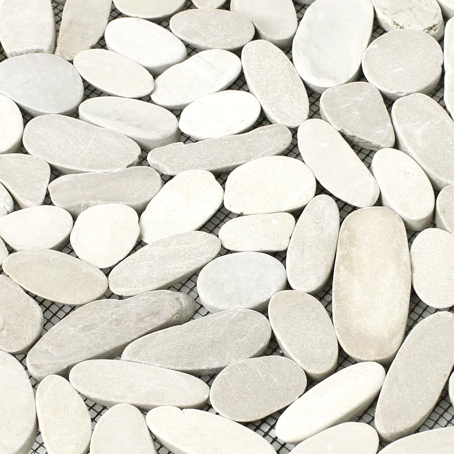 Si está buscando baldosas de piedra natural con tamaños de piedra variables, que se procesan en mosaicos, tiene razón con una alfombra de baldosas hecha de guijarros del río Burgas en Tan. Los guijarros de río tienen un acabado mate y dan a cualquier suelo un aspecto natural. El cliente puede elegir entre diferentes variantes de color.