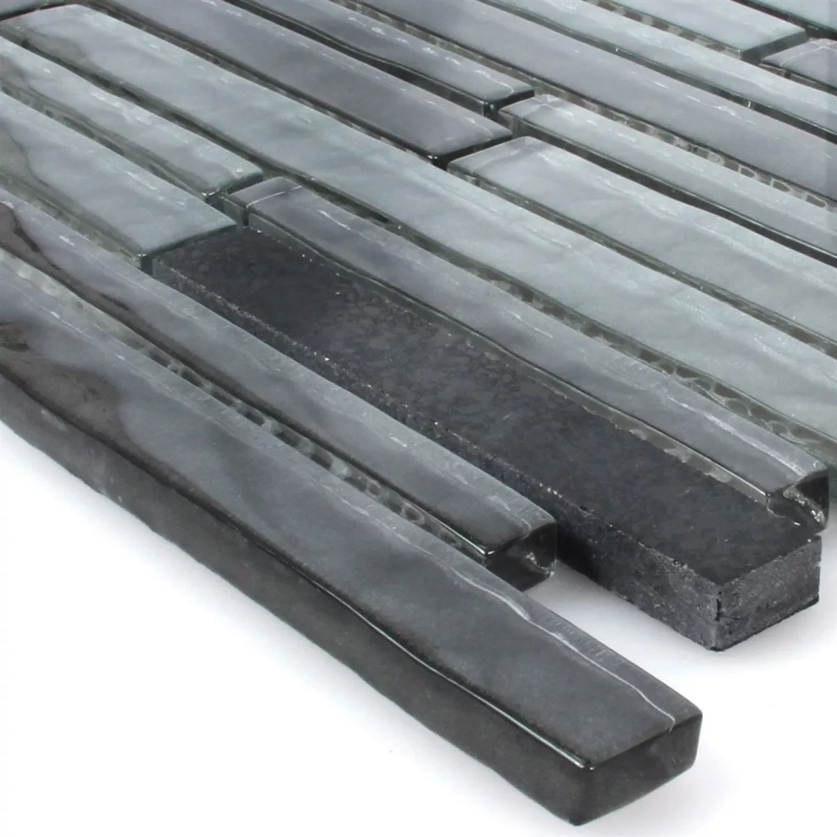 Muestra Azulejos De Mosaico Lauria Cristal Piedra Artificial Negro Stick