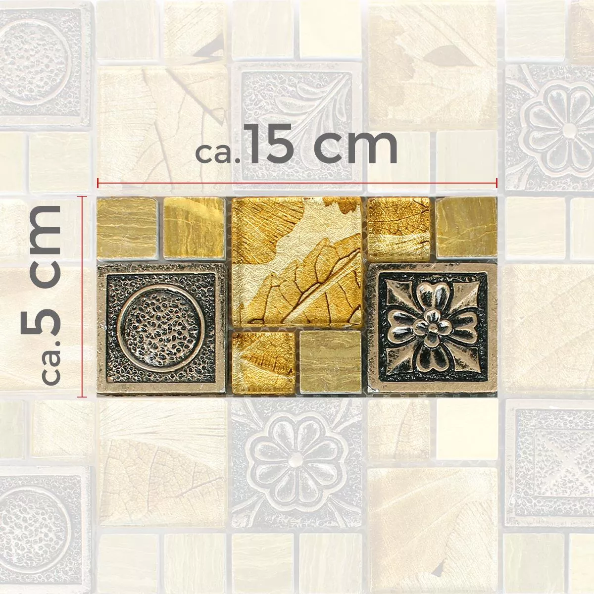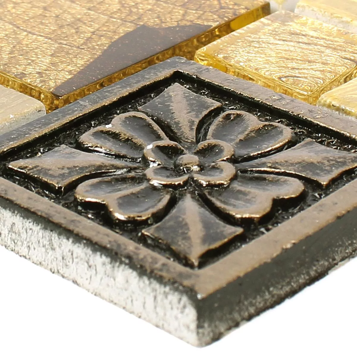 Muestra Azulejos De Mosaico Levanzo Cristal Resina Ornamento Mezcla Oro