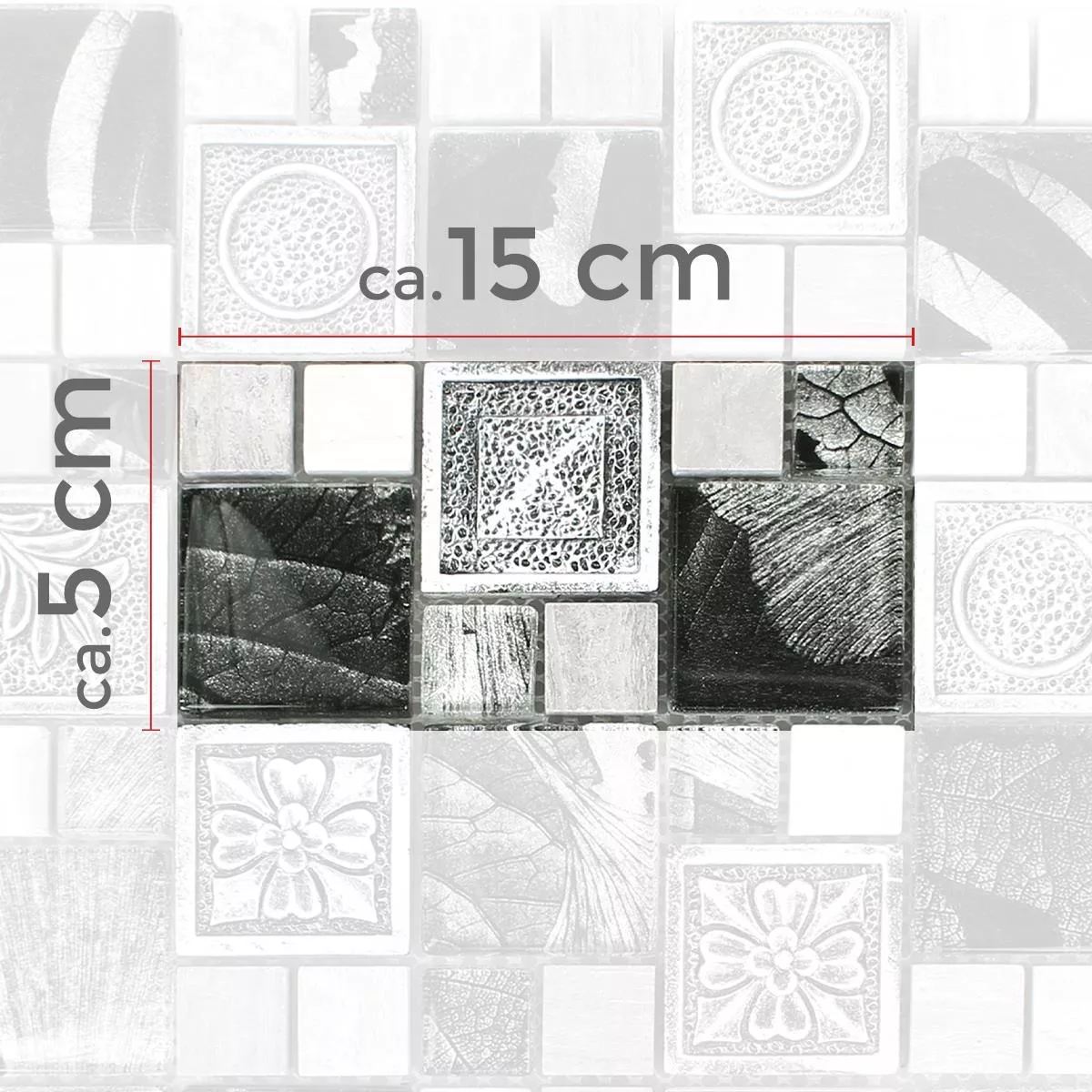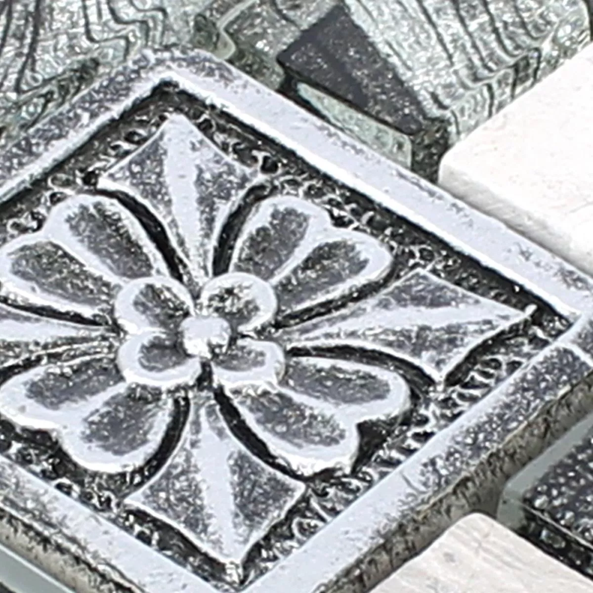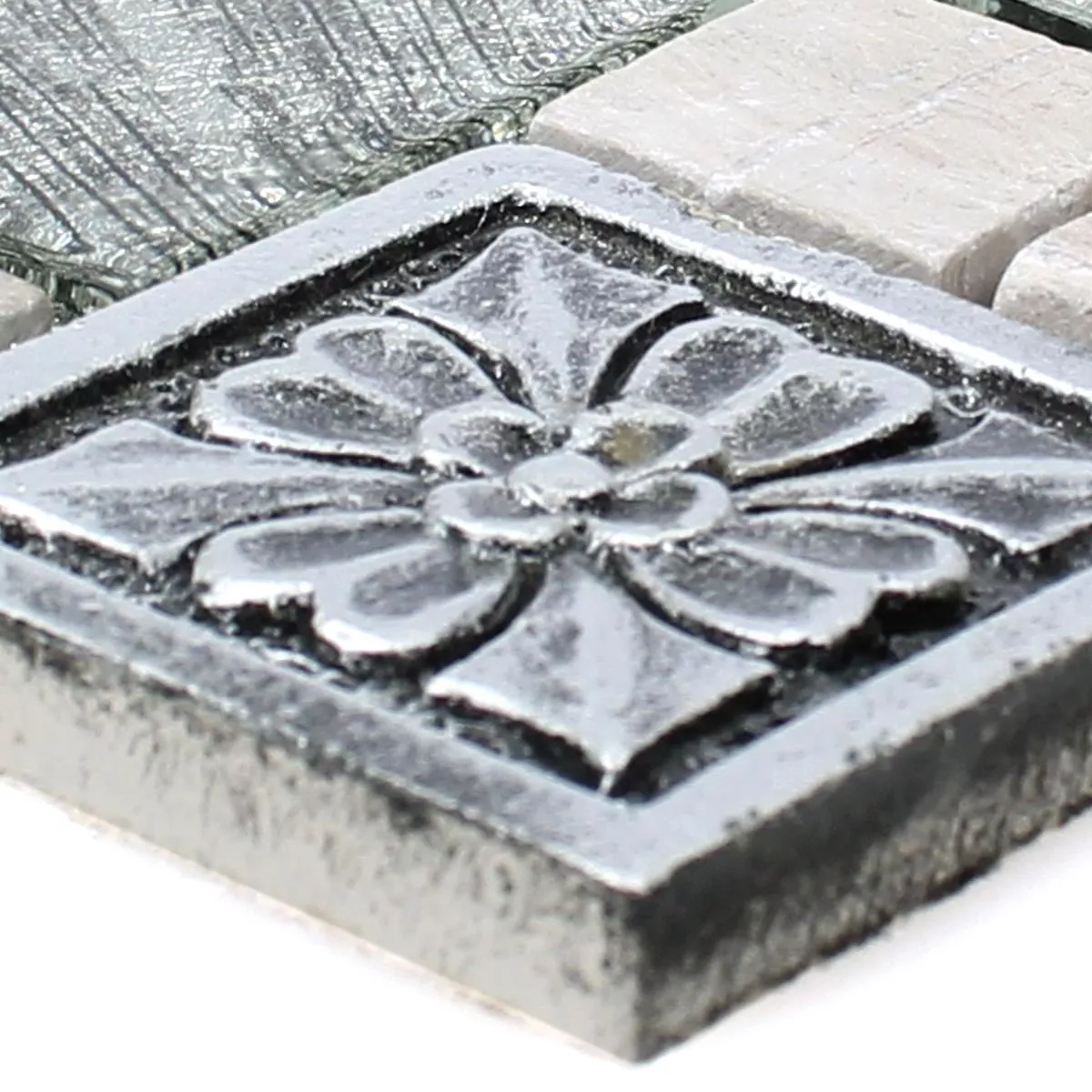 Muestra Azulejos De Mosaico Levanzo Cristal Resina Ornamento Mezcla Plateado