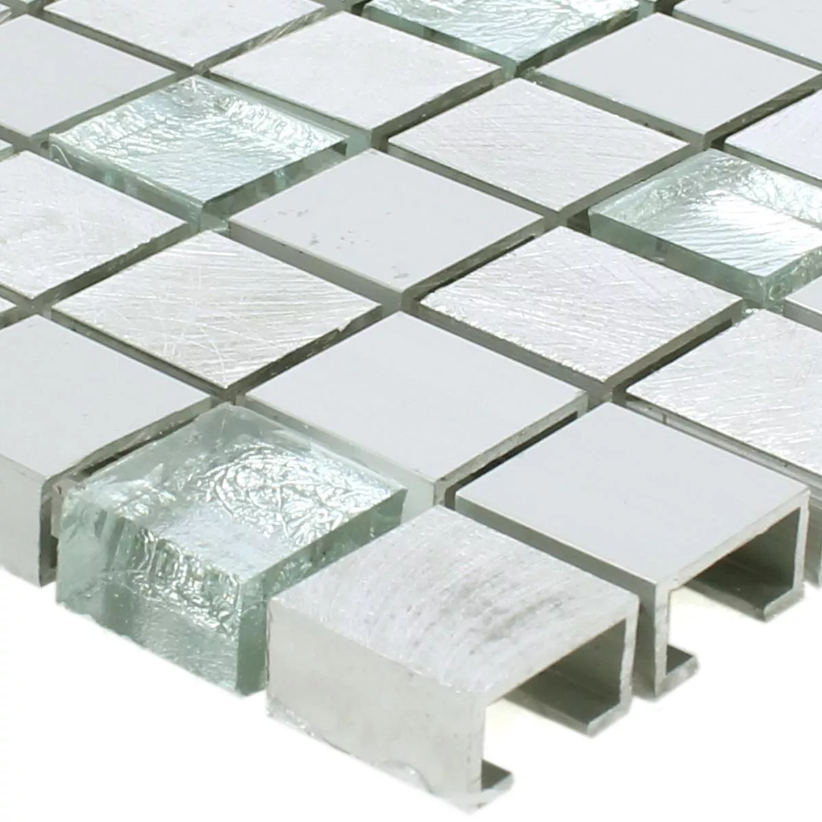 Muestra Azulejos De Mosaico Lissabon Auminio Cristal Mezcla Plateado