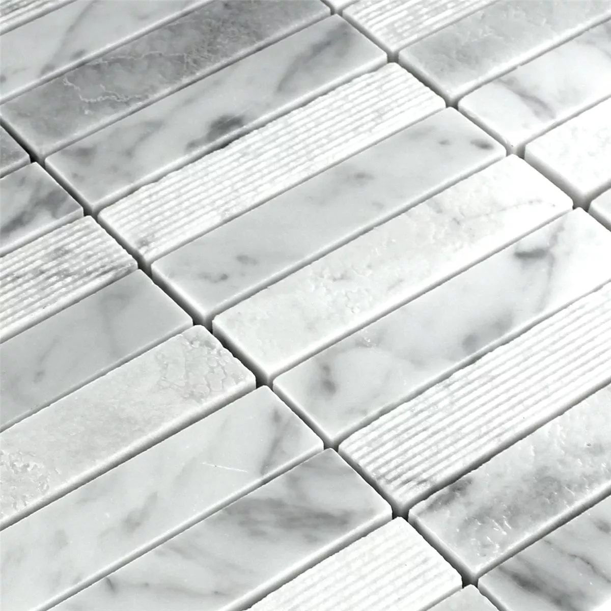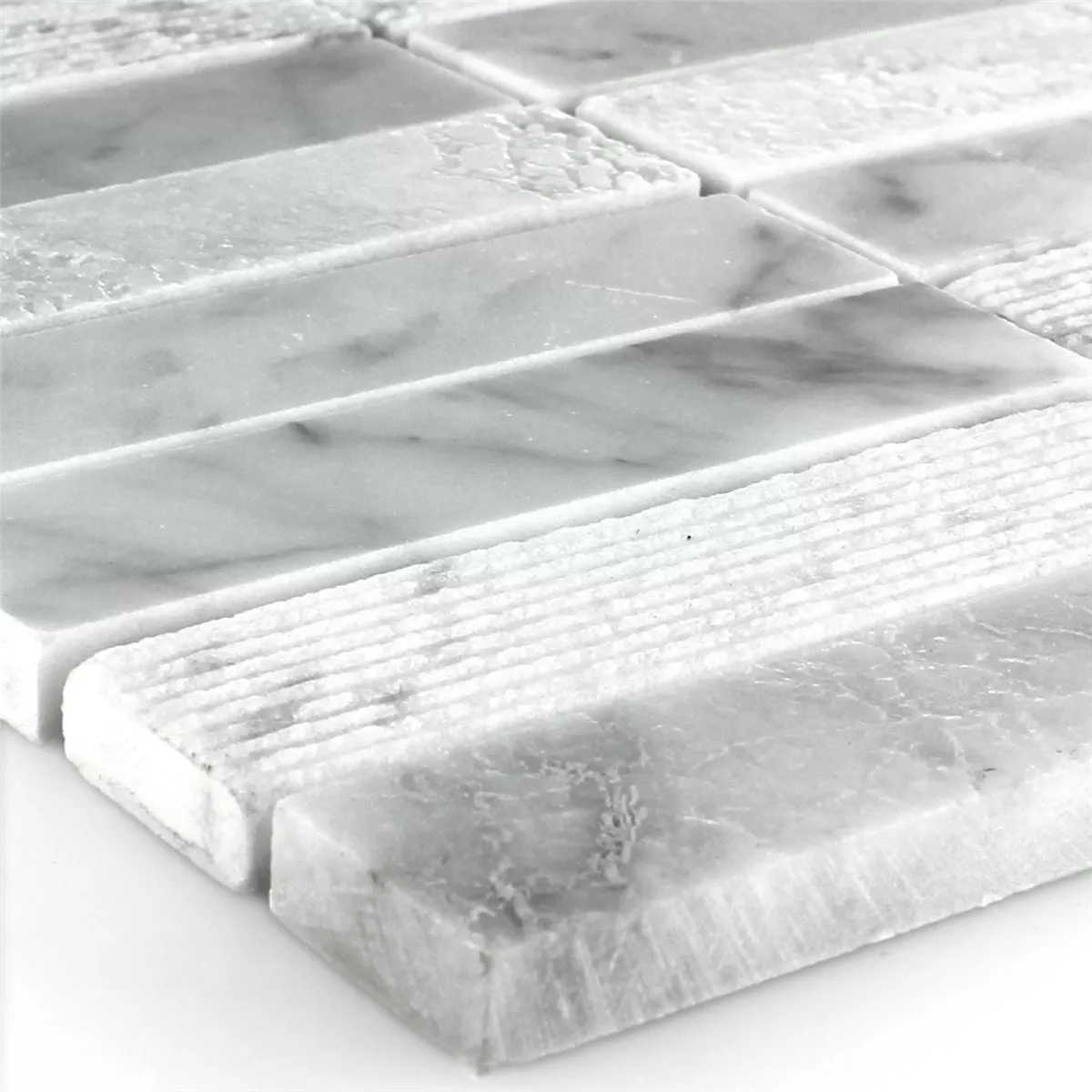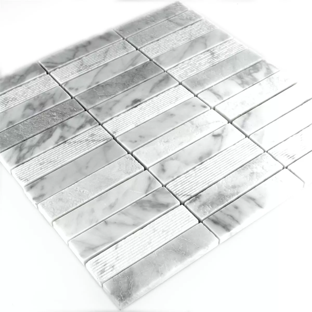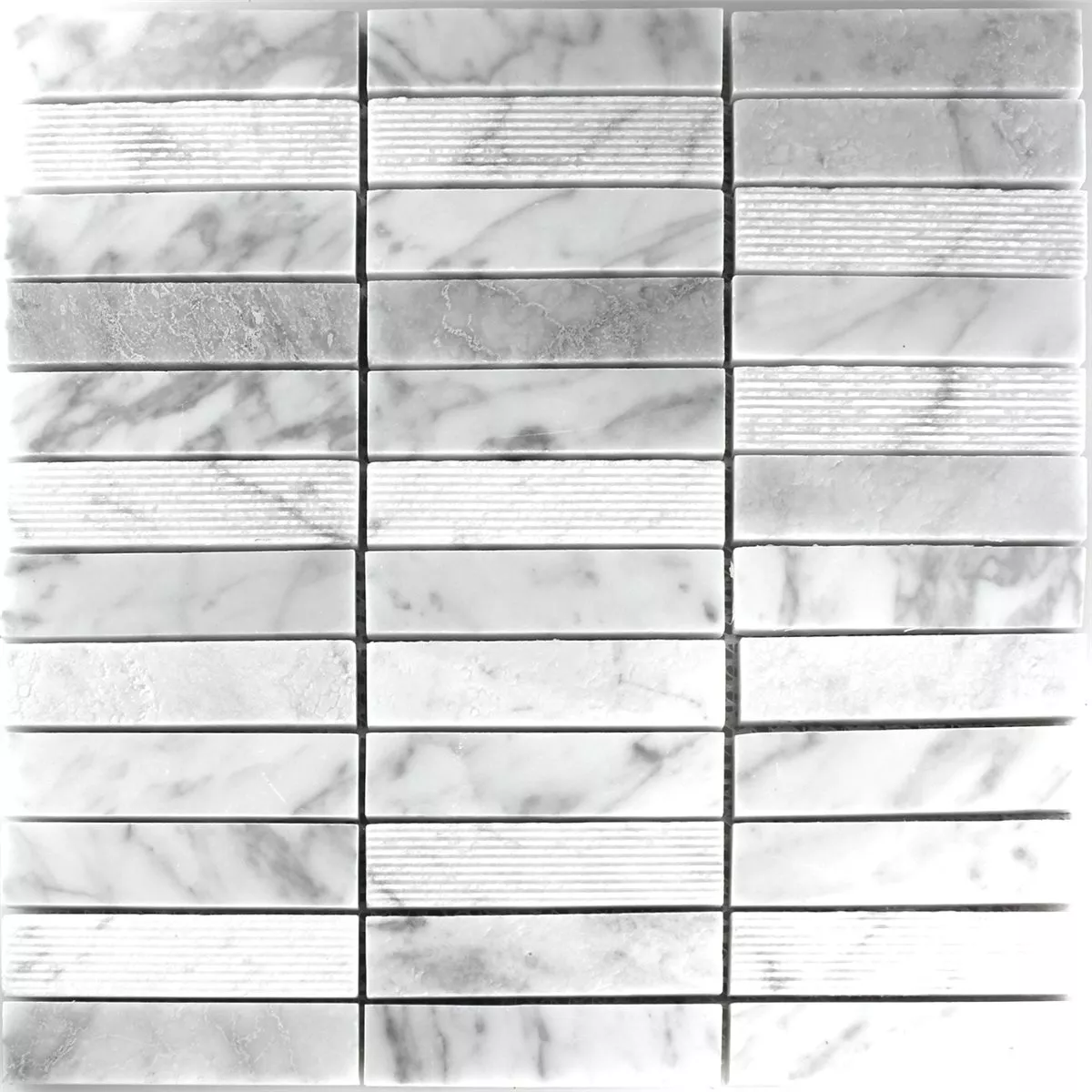 Muestra Azulejos De Mosaico Mármol Palillos Fresado Pulido Blanco