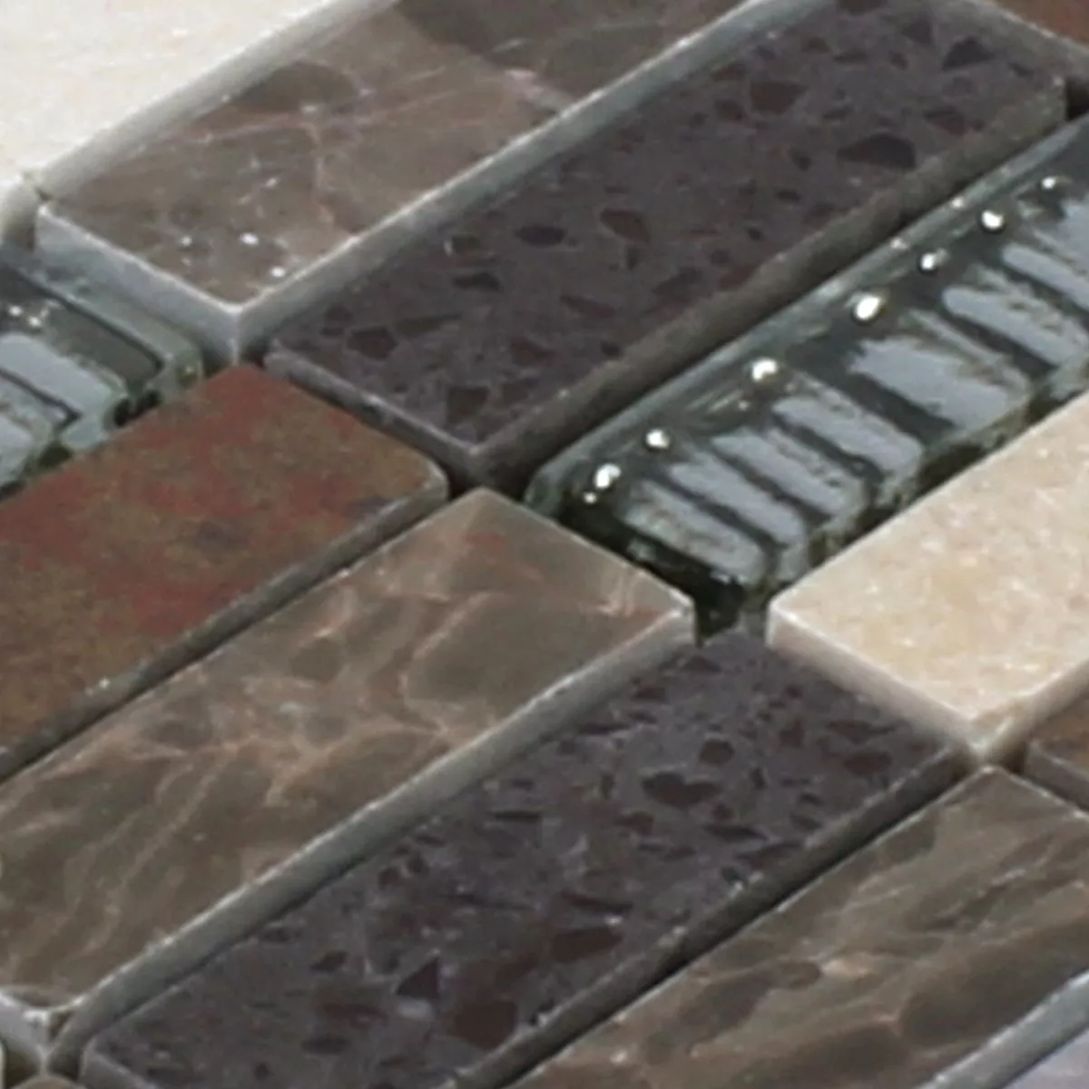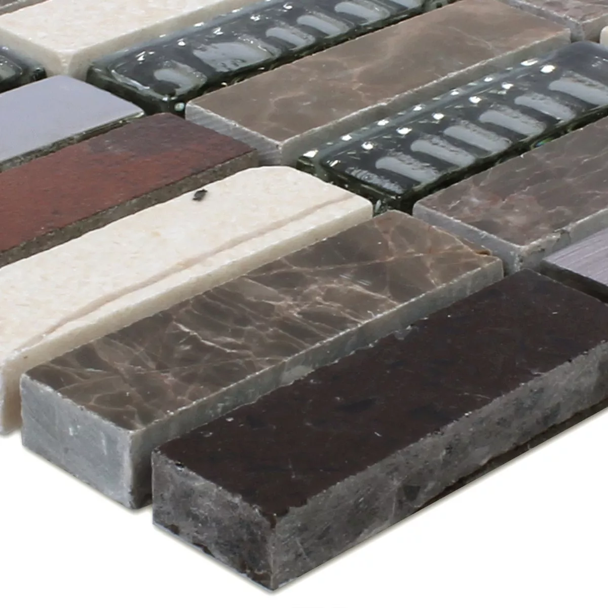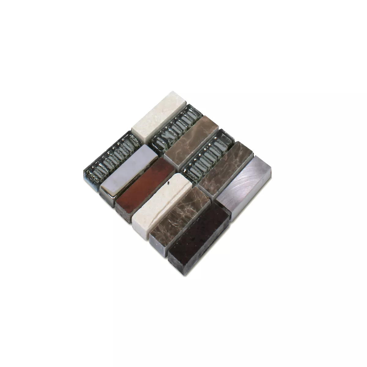 Muestra Azulejos De Mosaico Metal Cristal Piedra Natural Acadia Beige Marrón