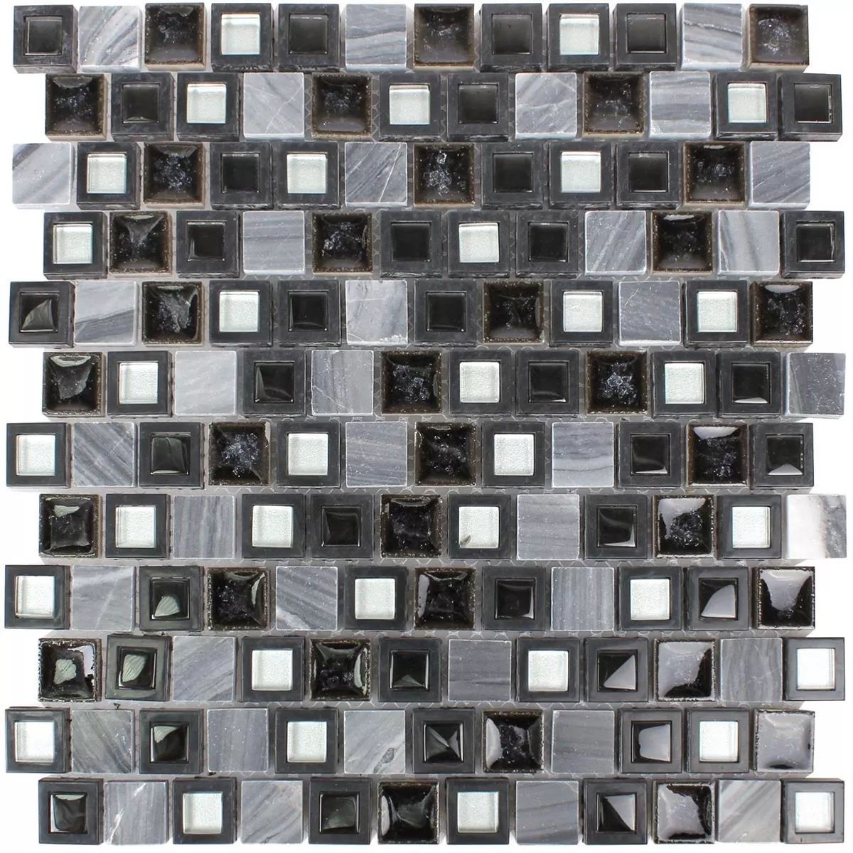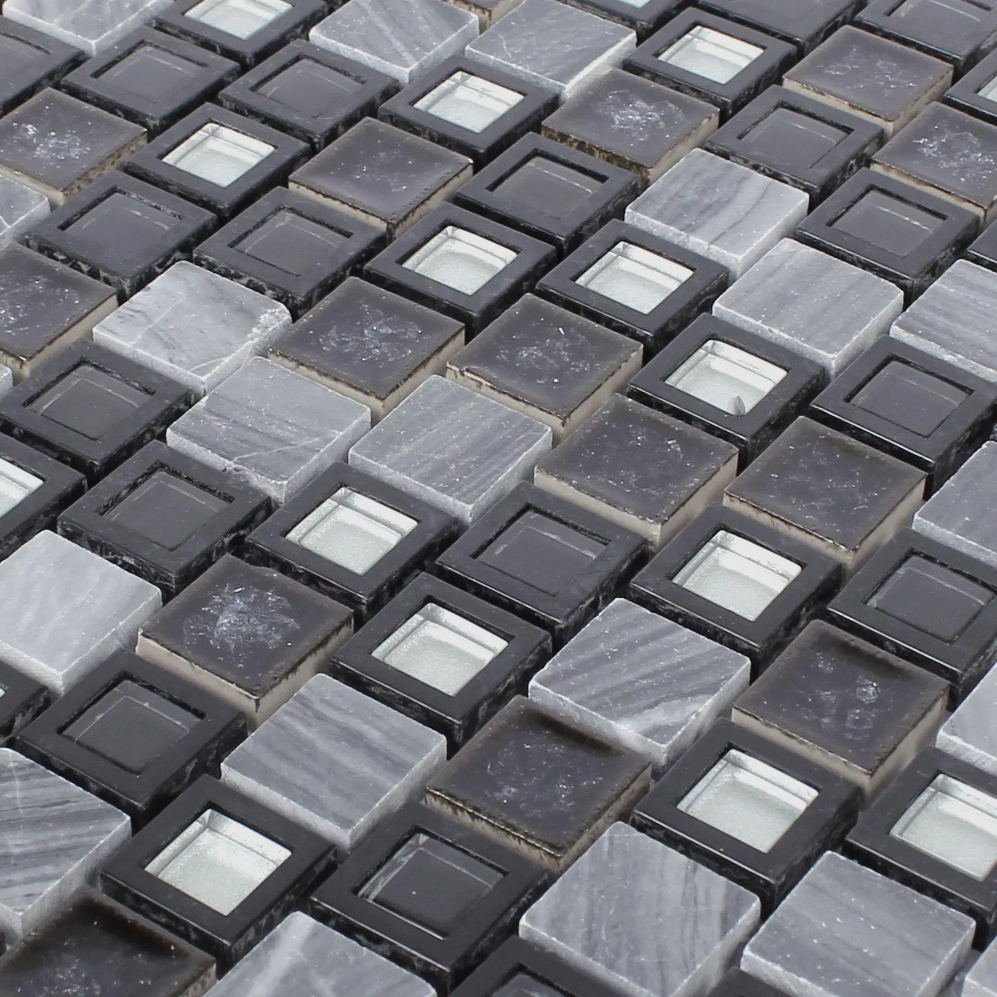 Muestra Azulejos De Mosaico Mosel Negro Gris