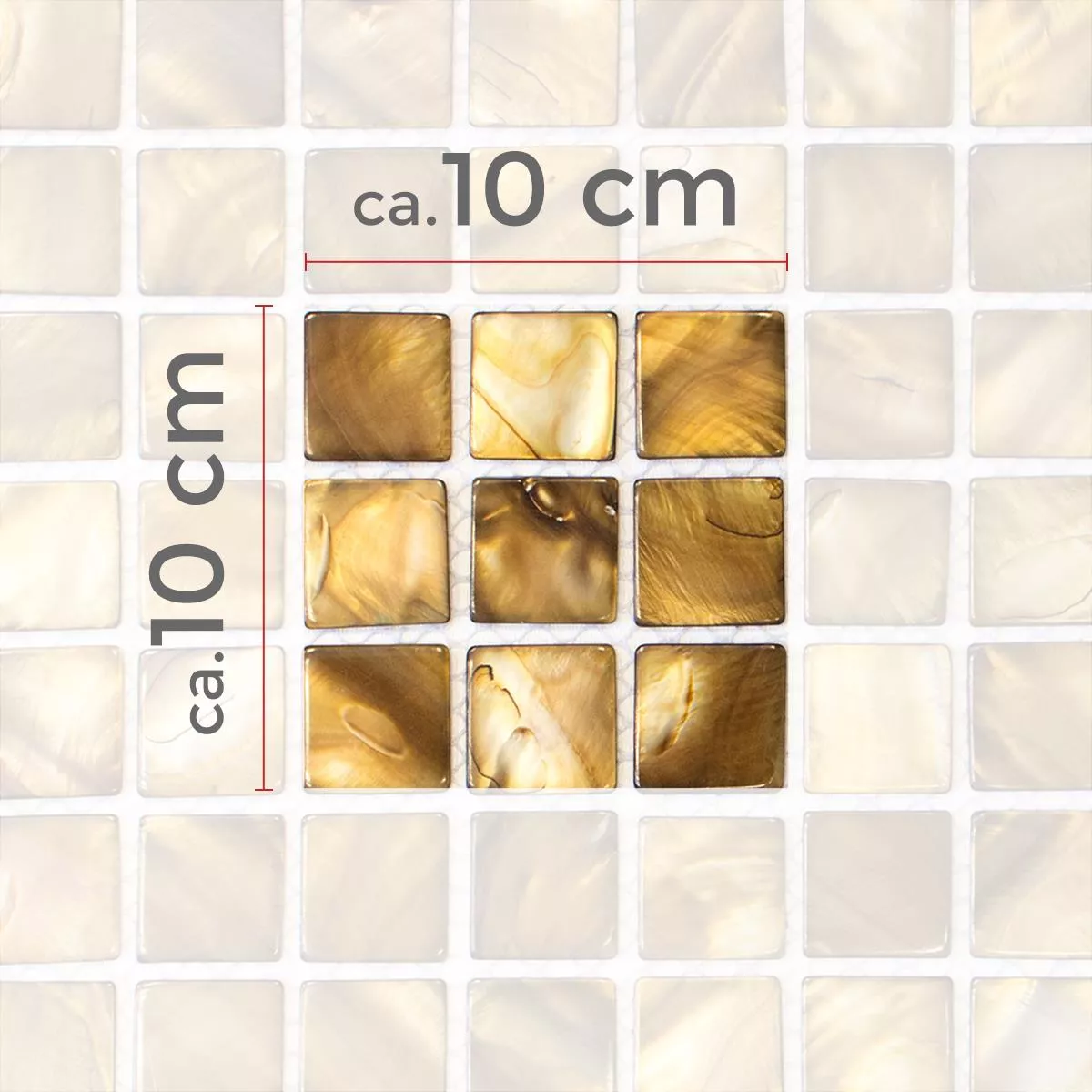 Los mosaicos de nácar Xenia tienen un grosor de 2 milímetros y un tamaño de estera de 30 x 30 centímetros. Debido a la superficie mate, se ve elegante y tal vez también embellece un salón, un oasis de bienestar o una piscina. Dado que un mosaico de nácar mate Xenia mide 0,090 metros cuadrados, este práctico tamaño se puede colocar de forma rápida y óptima. Dado que se trata de nácar, establece hábilmente acentos maravillosos como un espejo de cocina. También se pueden procesar diferentes colores como espejos de azulejos. Aquí no hay límites para la imaginación.