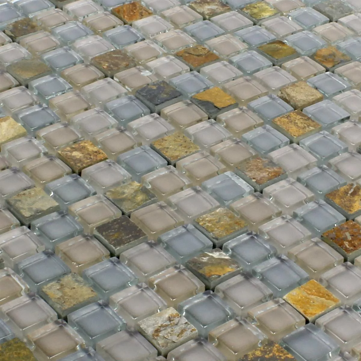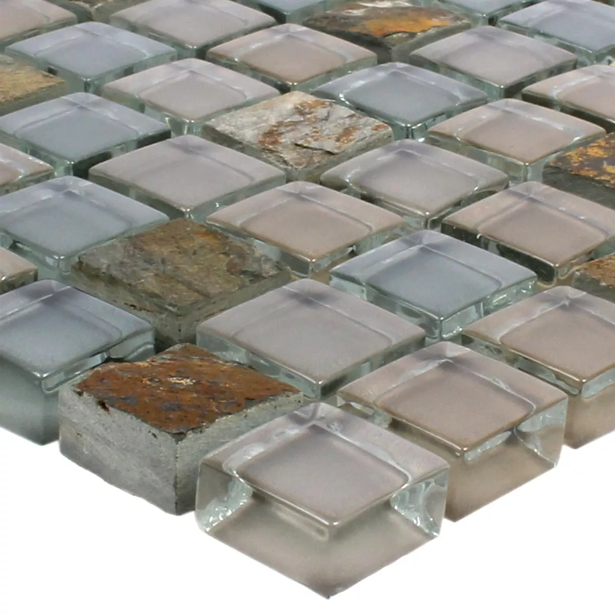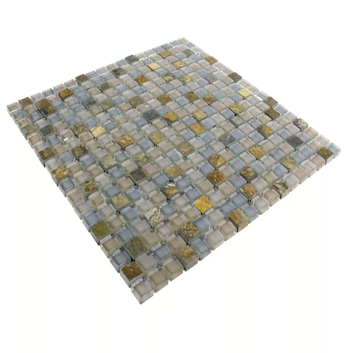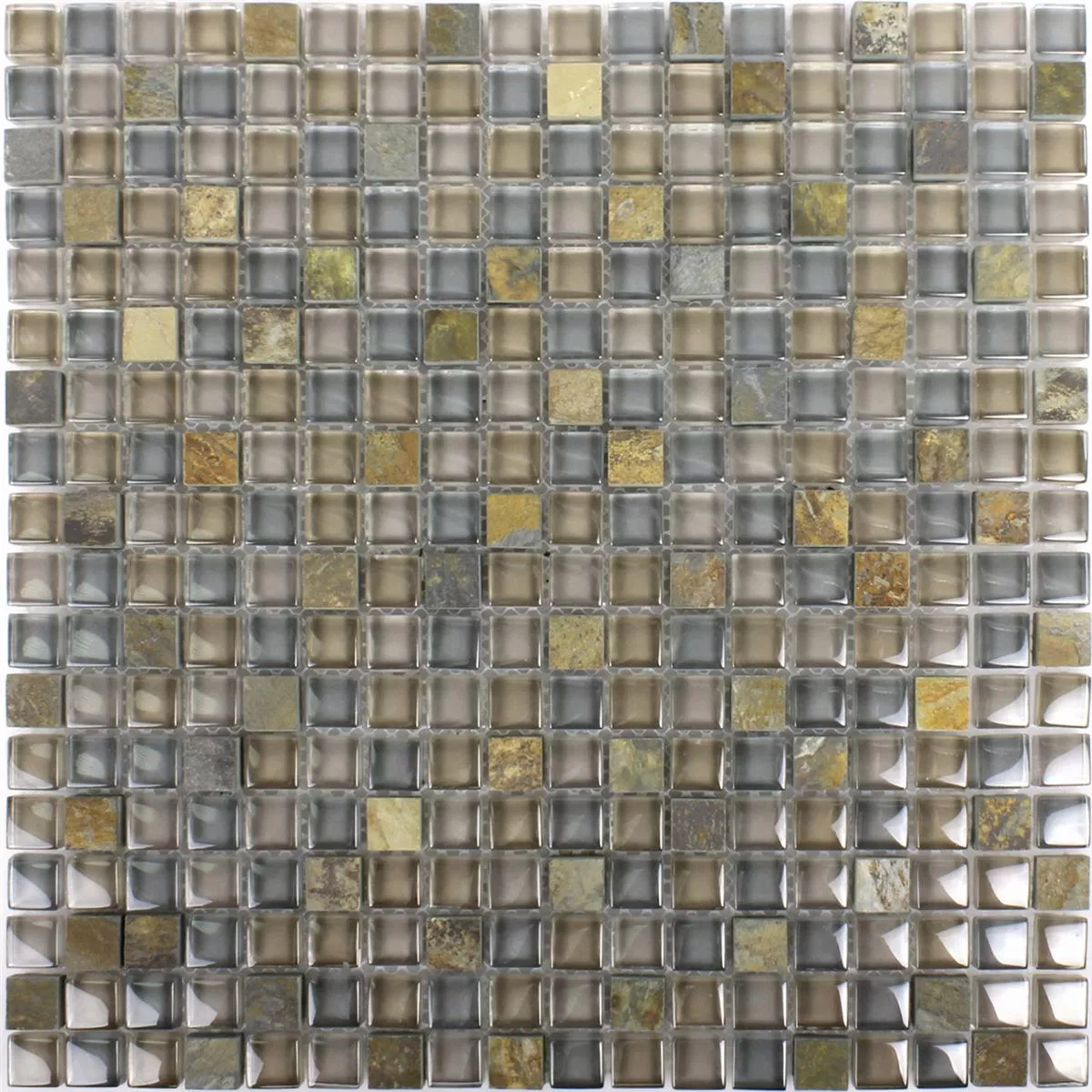 Muestra Azulejos De Mosaico Piedra Natural Cristal Mezcla Apollo Marrón