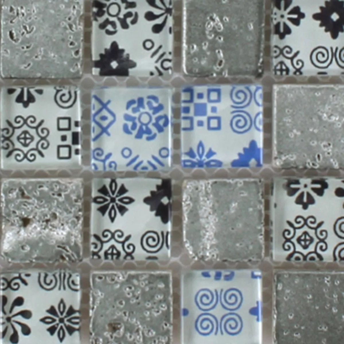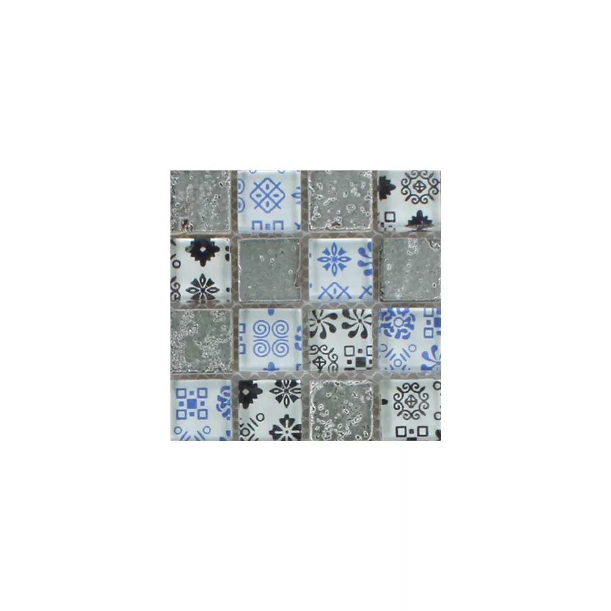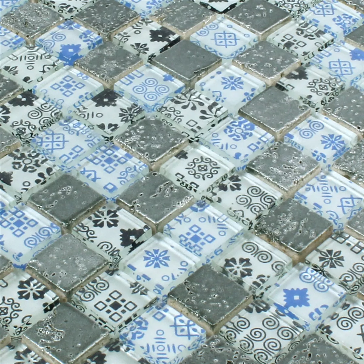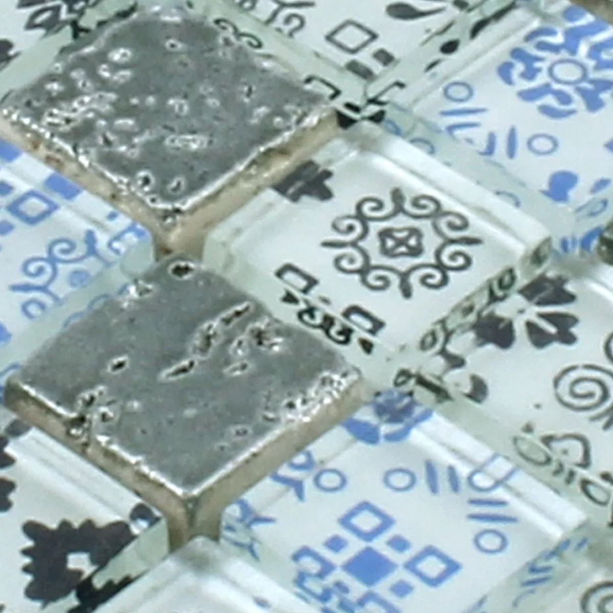 Muestra Azulejos De Mosaico Resina Cristal Belmont Azul Plateado
