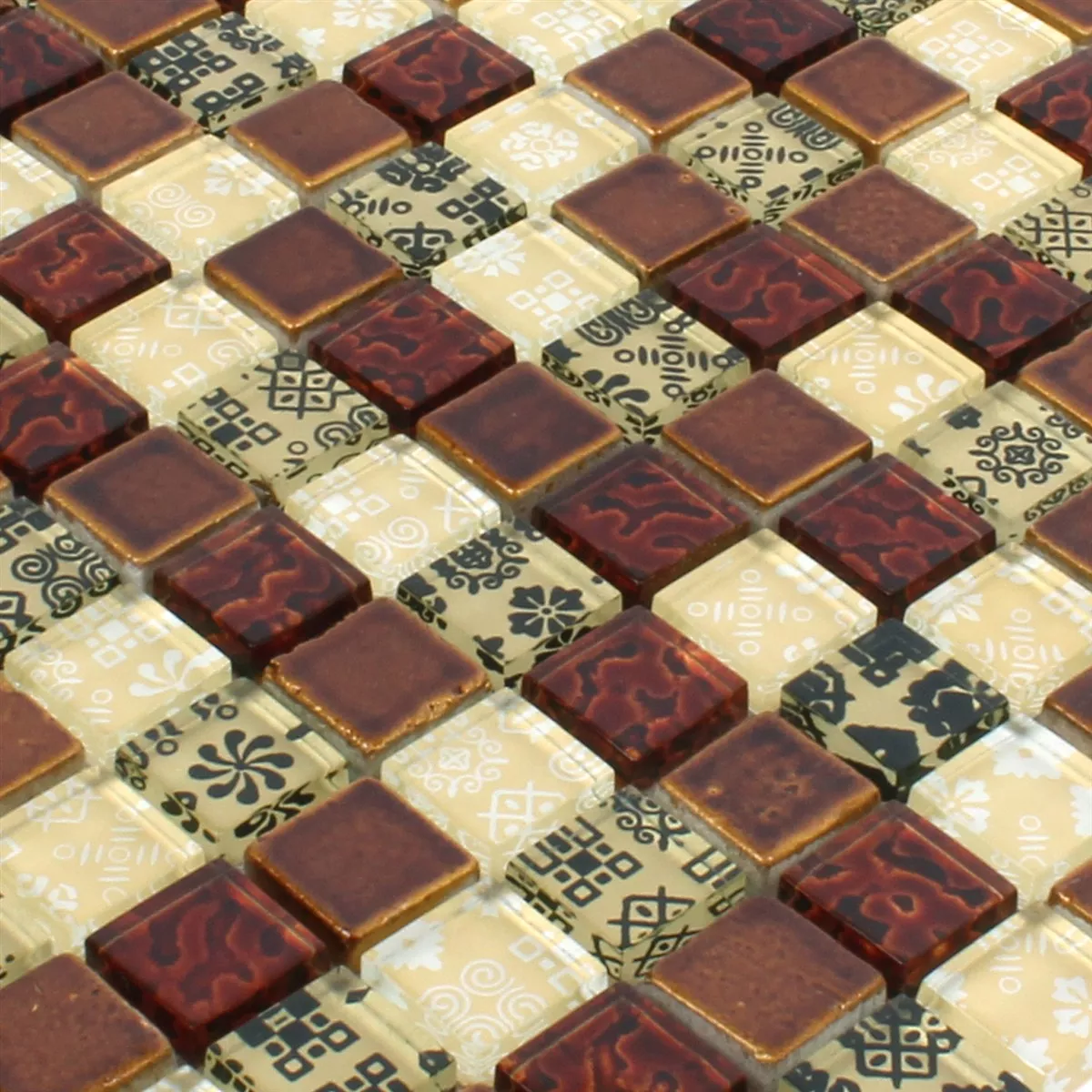 Muestra Azulejos De Mosaico Resina Cristal Belmont Rojo Beige