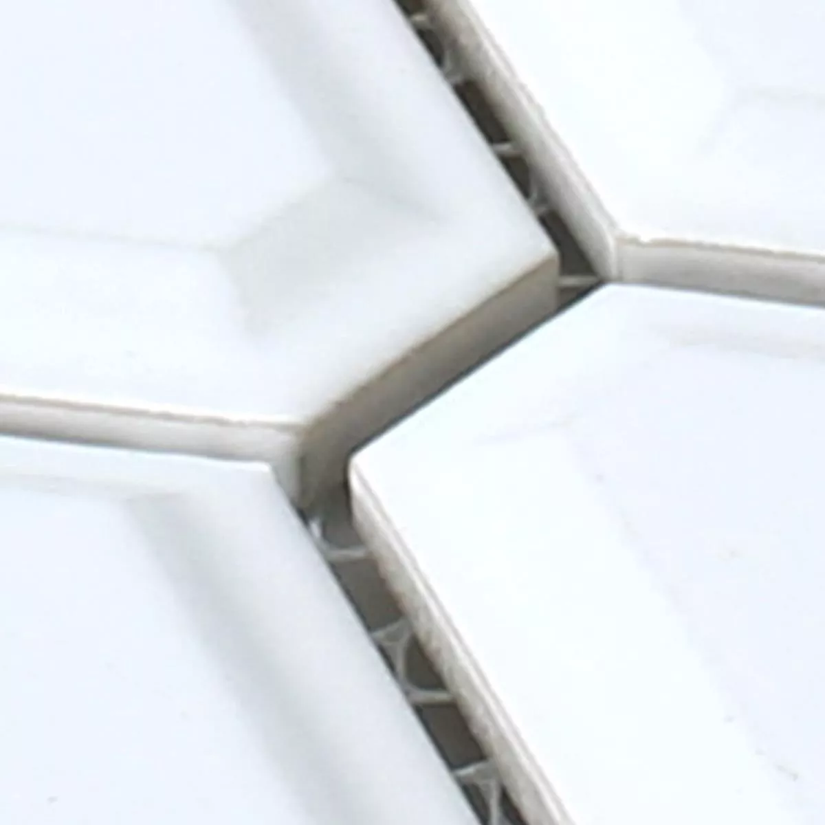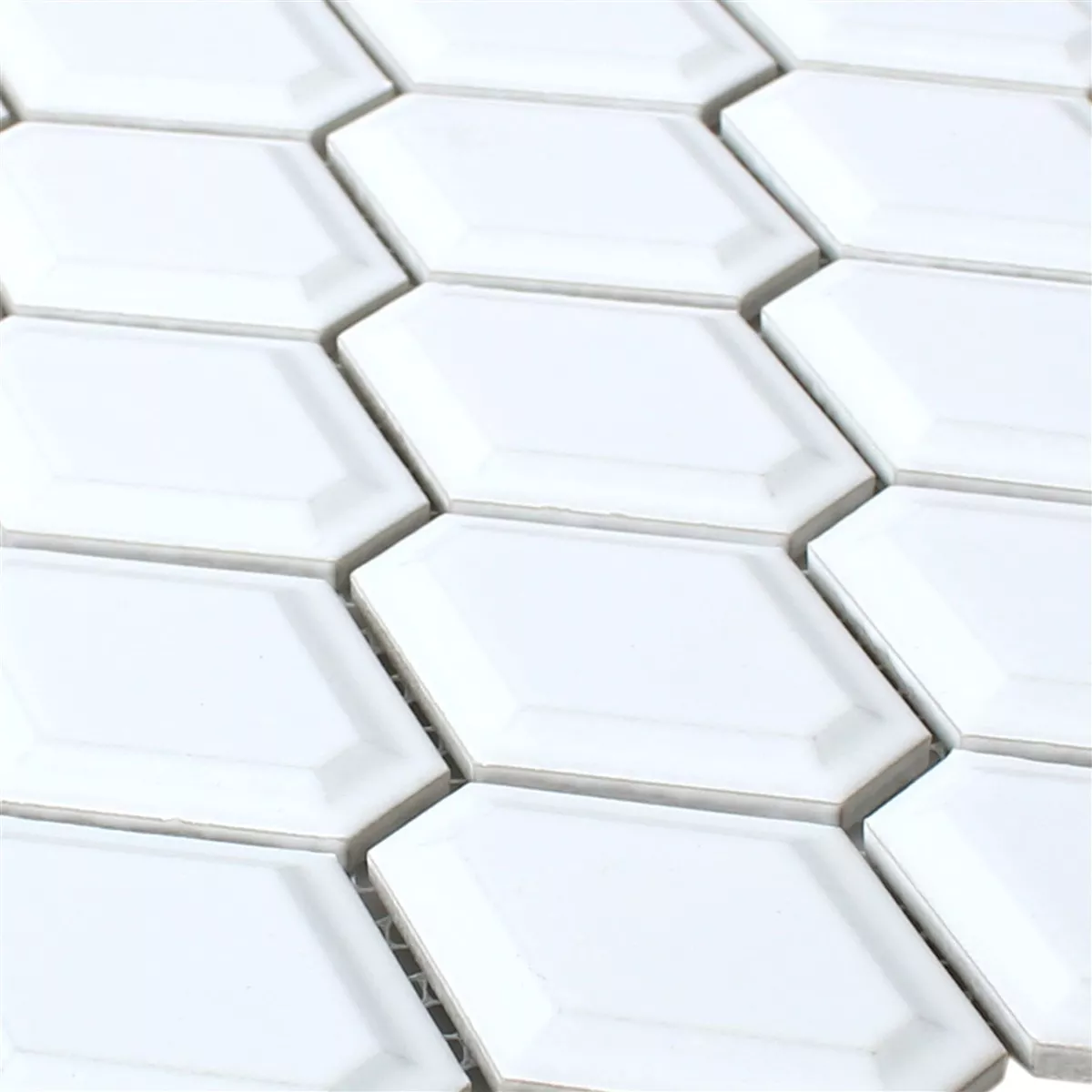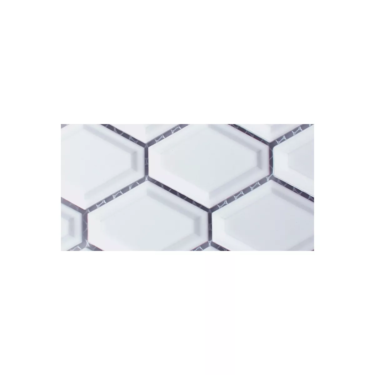 Los mosaicos están hechos de la mejor cerámica. Las piezas han sido cortadas a máquina y tienen exactamente la misma forma y longitud. Durante el procesamiento, a las piedras se les dio la forma de rombos, con las esquinas estrechas dobladas y formando así una esquina de 6. Los bordes están redondeados en ángulo, lo que da como resultado una gran elevación en forma de diamante en el medio. Este bisel le da a los mosaicos un efecto 3D, dependiendo de cómo se coloquen y se muestren. Dependiendo de la elección del color, la superficie es mate o brillante. Las piedras están en los colores blanco mate/brillante y negro mate/brillante. Los azulejos se pueden utilizar tanto en interiores como en exteriores. Visualmente, se destacan mejor en baños o cocinas. En el exterior quedan bien en balcones, terrazas o en el jardín como adorno o cenefa.