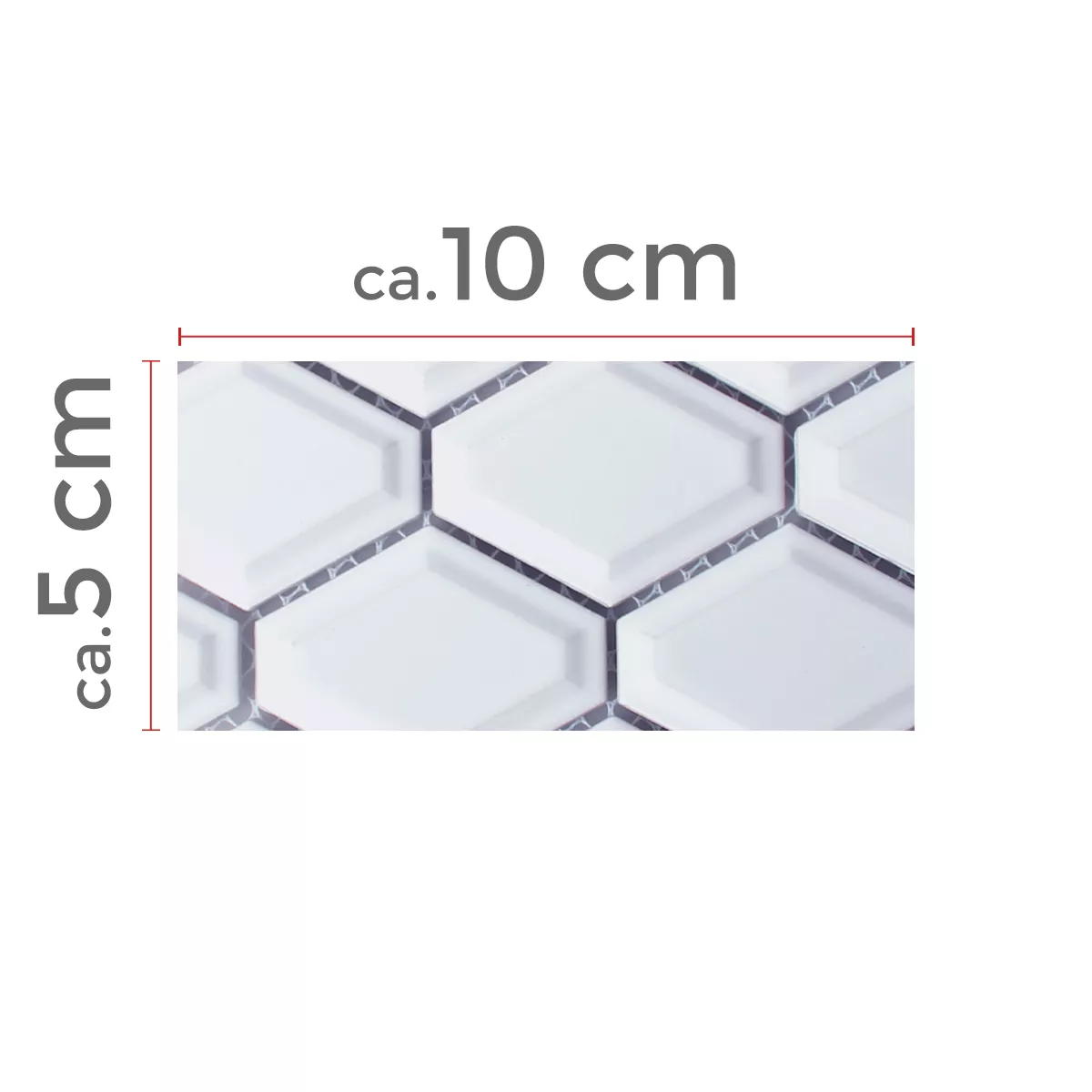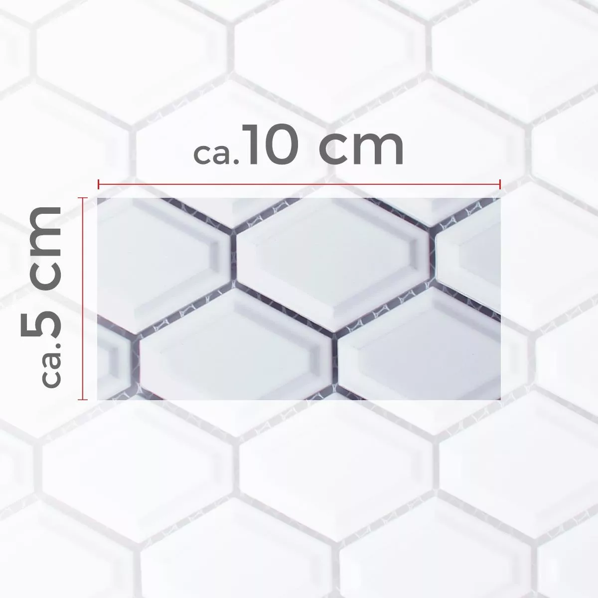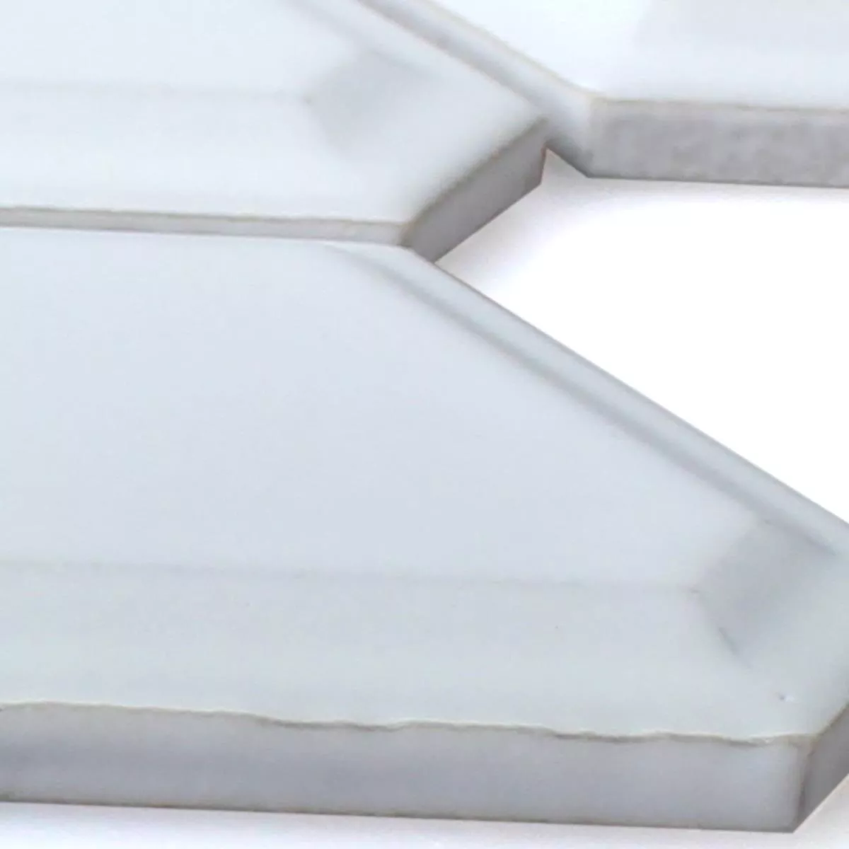Los mosaicos están hechos de la mejor cerámica. Las piezas han sido cortadas a máquina y tienen exactamente la misma forma y longitud. Durante el procesamiento, a las piedras se les dio la forma de rombos, con las esquinas estrechas dobladas y formando así una esquina de 6. Los bordes están redondeados en ángulo, lo que da como resultado una gran elevación en forma de diamante en el medio. Este bisel le da a los mosaicos un efecto 3D, dependiendo de cómo se coloquen y se muestren. Dependiendo de la elección del color, la superficie es mate o brillante. Las piedras están en los colores blanco mate/brillante y negro mate/brillante. Los azulejos se pueden utilizar tanto en interiores como en exteriores. Visualmente, se destacan mejor en baños o cocinas. En el exterior quedan bien en balcones, terrazas o en el jardín como adorno o cenefa.