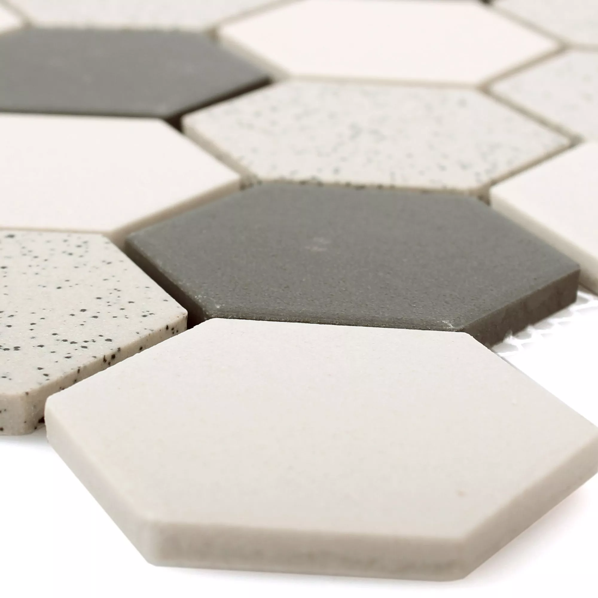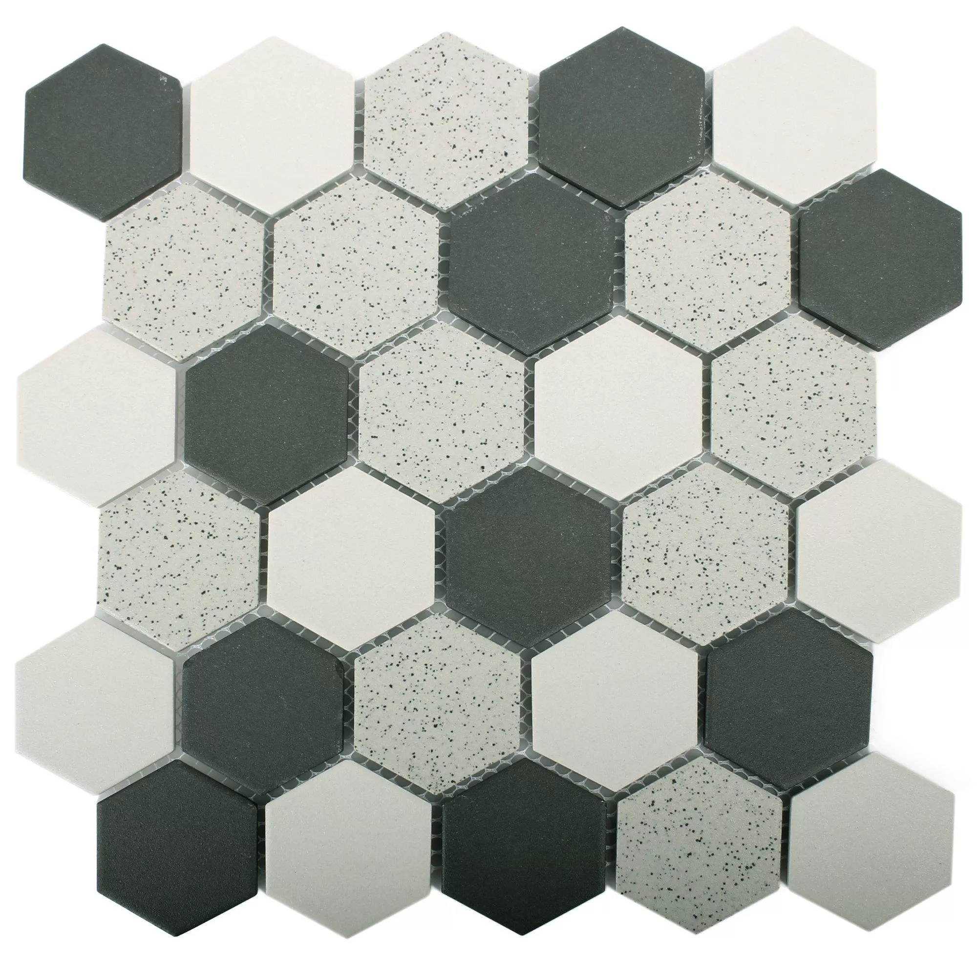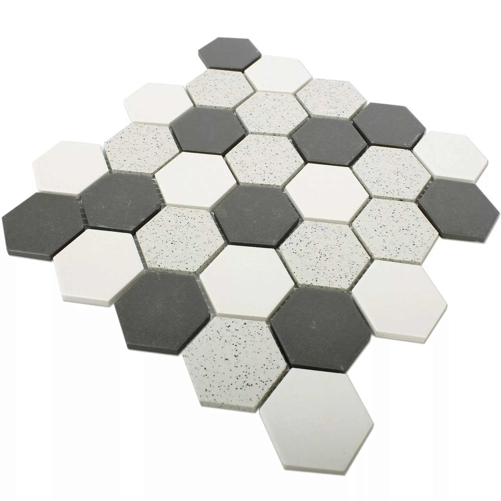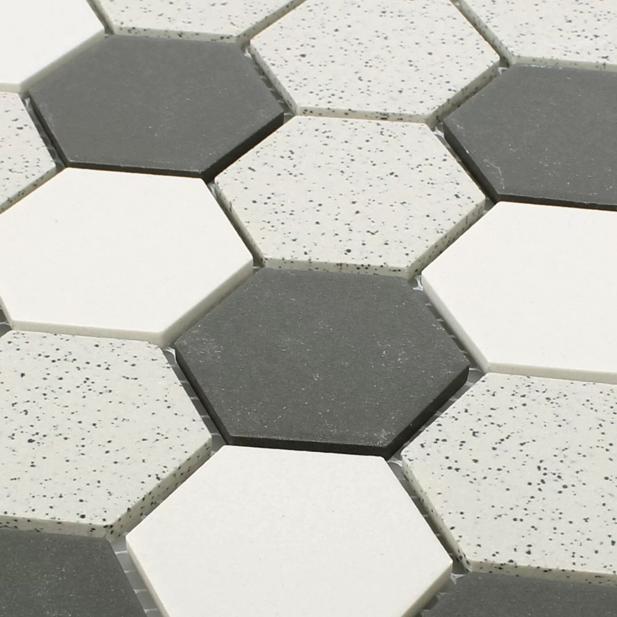 Muestra Cerámica Azulejos De Mosaico Monforte Hexagonales Negro Gris