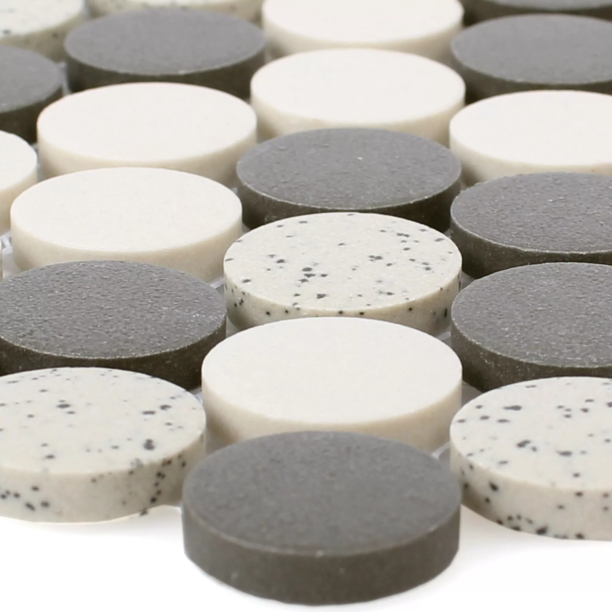 Los mosaicos cerámicos Monforte Knopf en color negro gris se utilizan para revestir un patrón aleatorio o deseado en el suelo o la pared. Los nasties están disponibles en muchas variantes y patrones. Los azulejos de mosaico se utilizan a menudo para los baños o la pared trasera de la cocina, por ejemplo. Sobre todo, los mosaicos para el baño deben ser antideslizantes para que nadie resbale en el suelo mojado después de ducharse o bañarse. Los azulejos tienen la resistencia al deslizamiento R10 y están estructurados y sin esmaltar. Tienen un aspecto mate y están fabricados en cerámica. Los mosaicos están disponibles en varias variantes. El cliente interesado puede adquirir las baldosas en forma de hexágono, forma cuadrada, forma de botón o forma de palo. Por ejemplo, las formas cuadradas y hexagonales están disponibles en diferentes tamaños de mosaico. El color de todas las variantes es una mezcla de negro y gris.