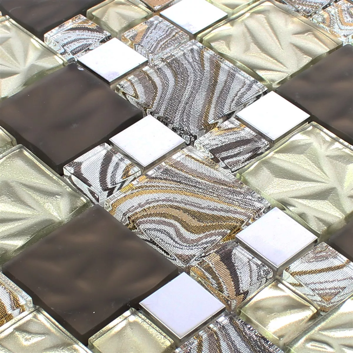 Muestra Cristal Metal Acero Inoxidable Mosaico Zadar Beige Marrón