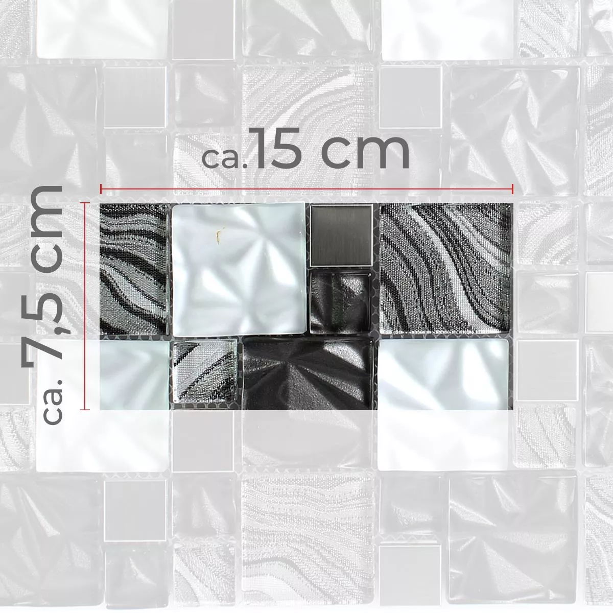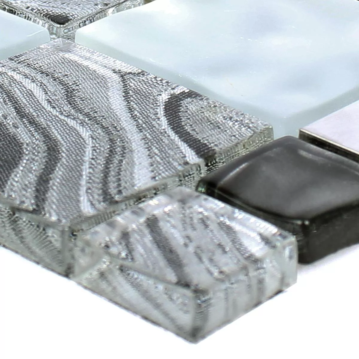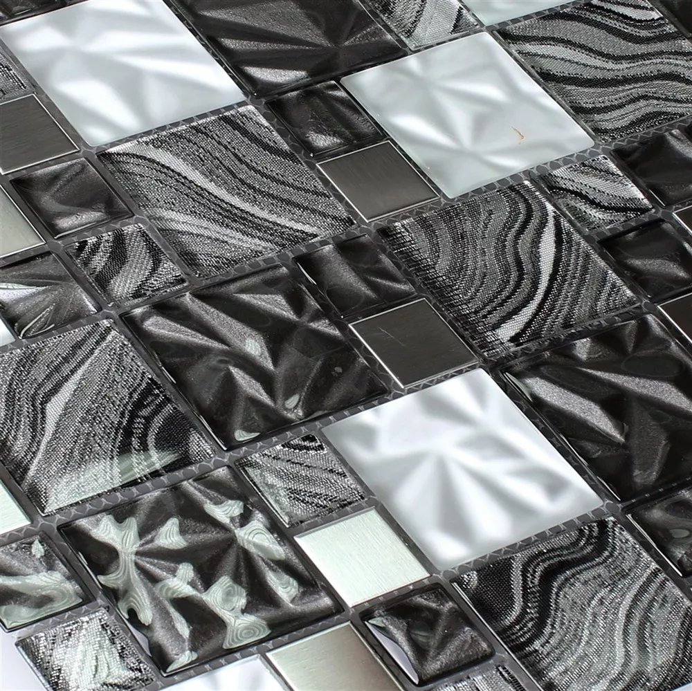 Muestra Cristal Metal Acero Inoxidable Mosaico Zadar Gris Negro
