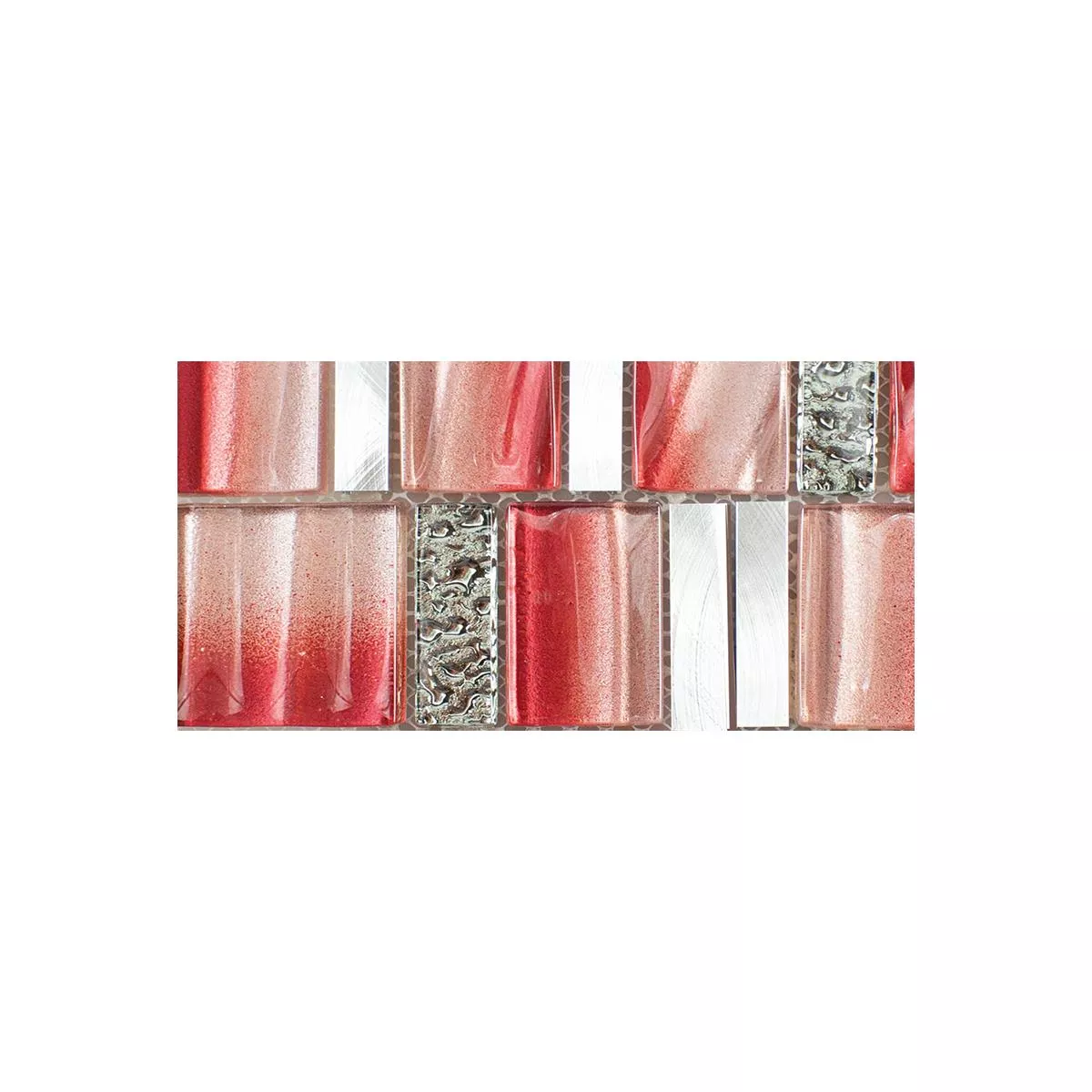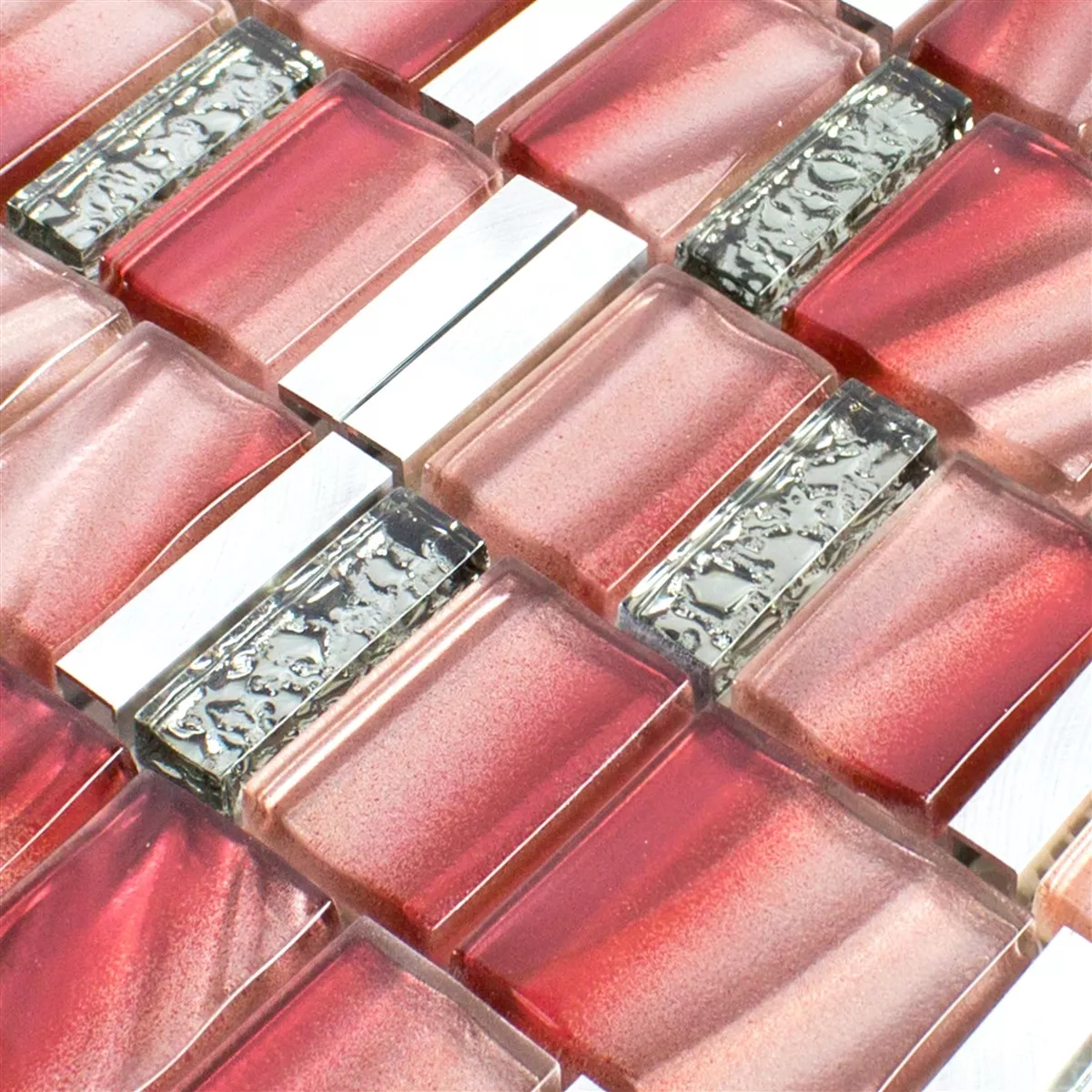 Muestra Cristal Metal Azulejos De Mosaico Union Rojo Plateado