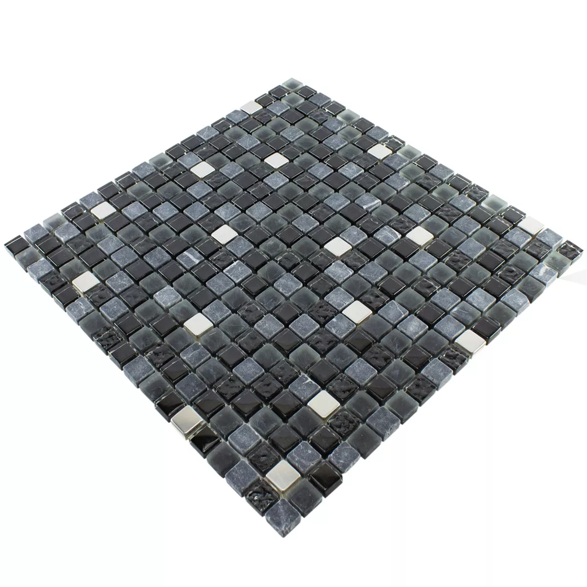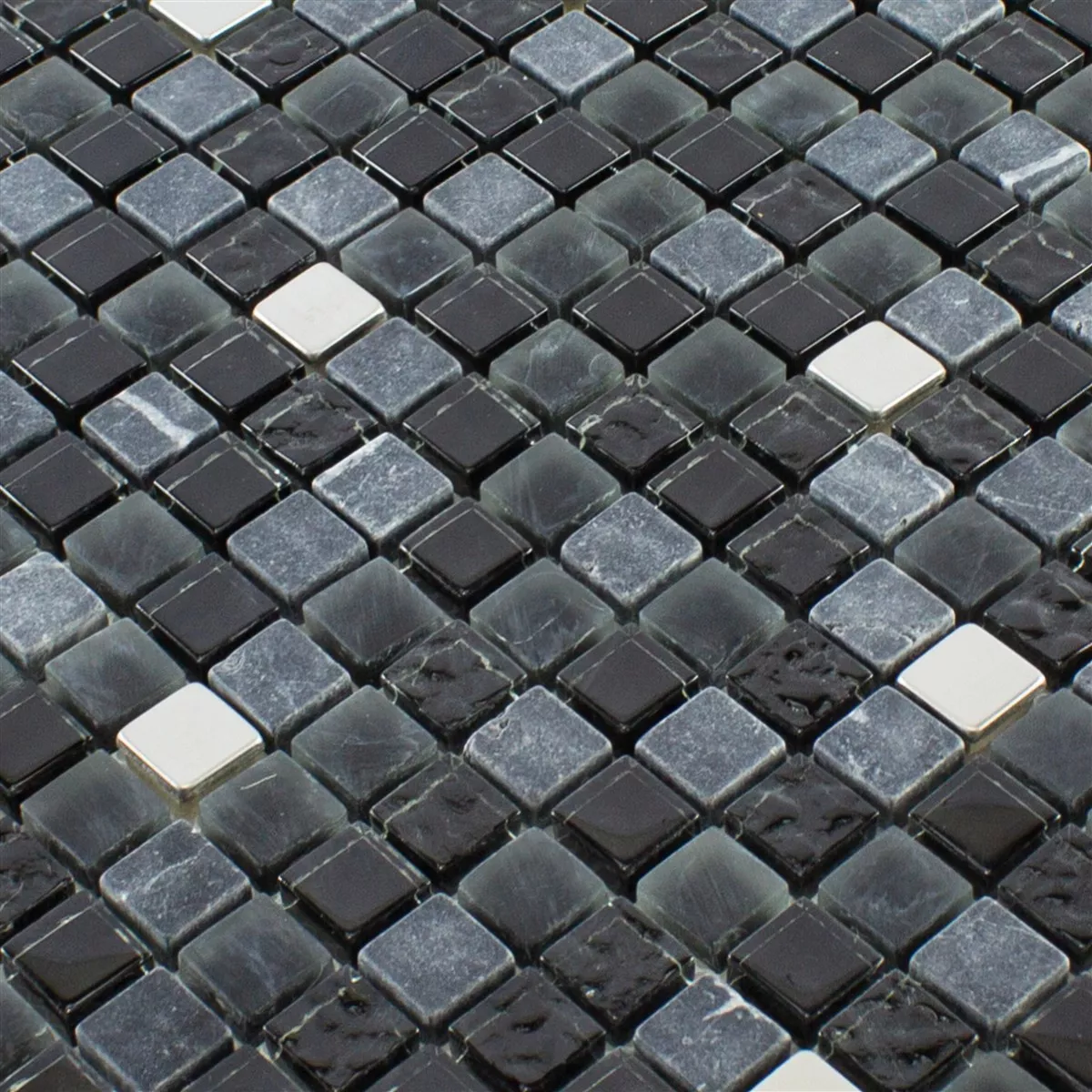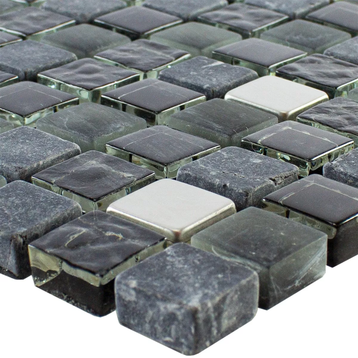 Muestra Cristal Piedra Natural Acero Inoxidable Mosaico Kosovo Negro Plateado