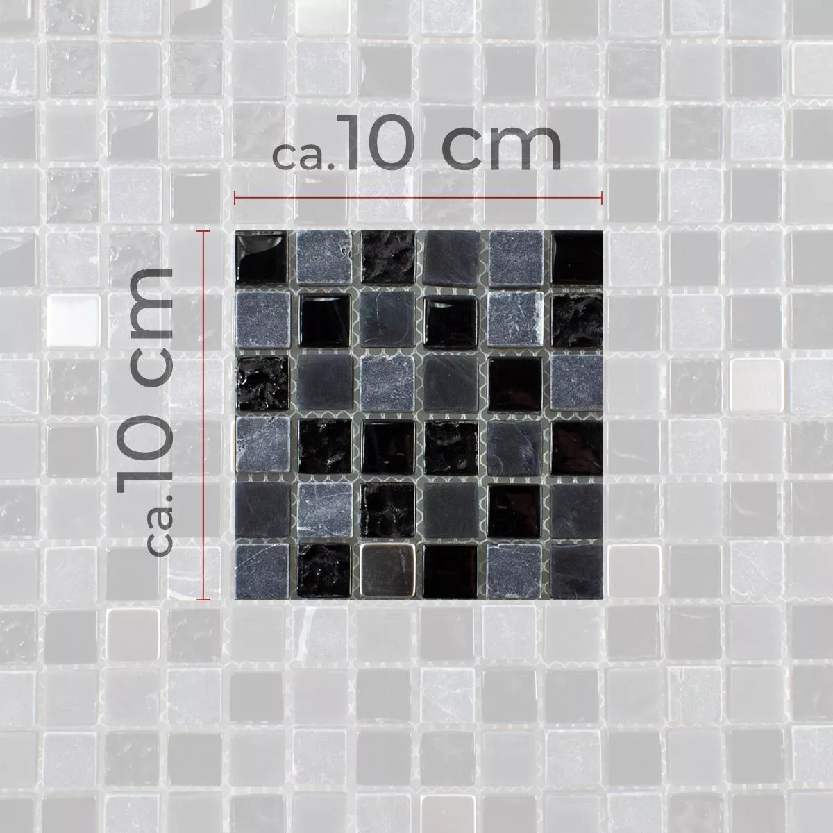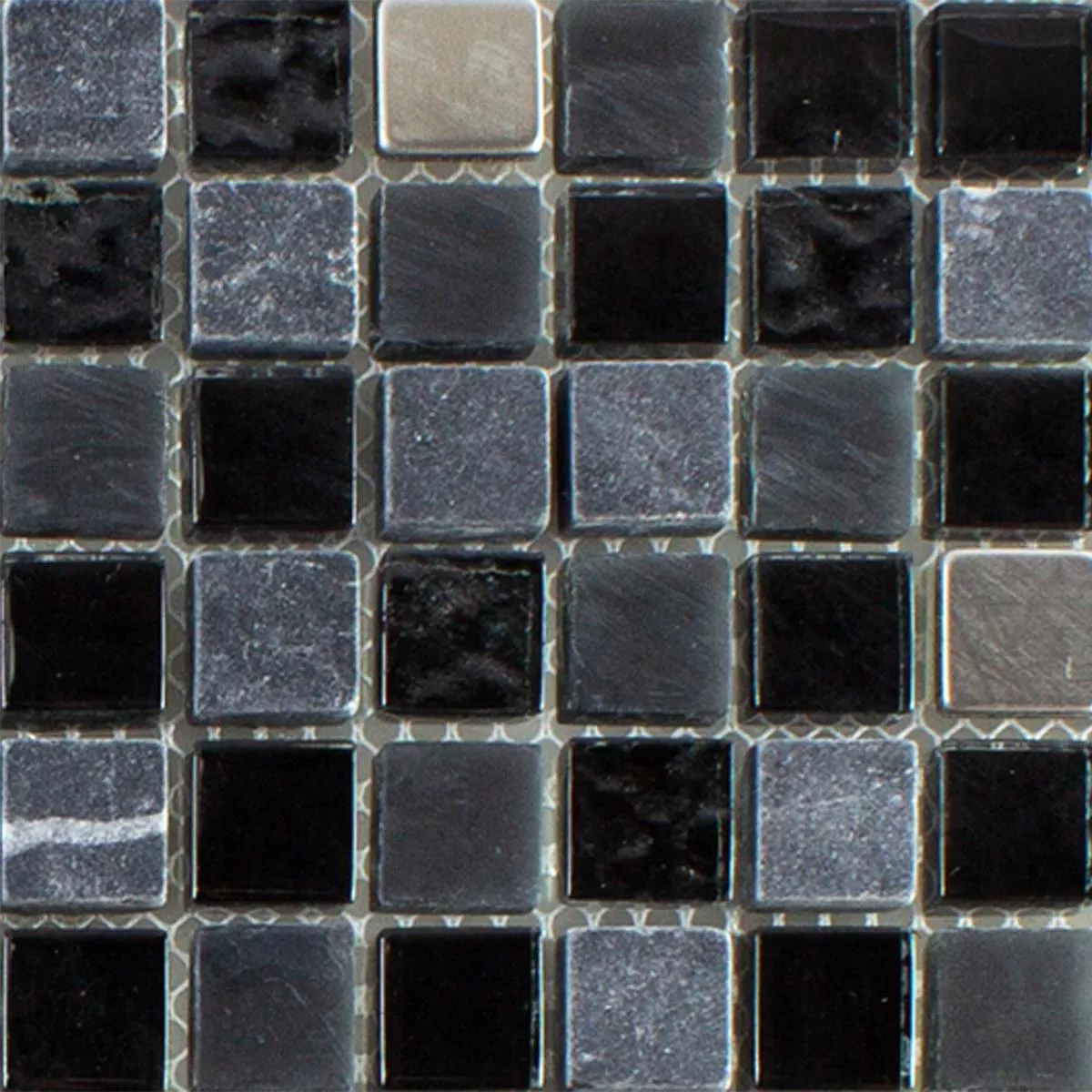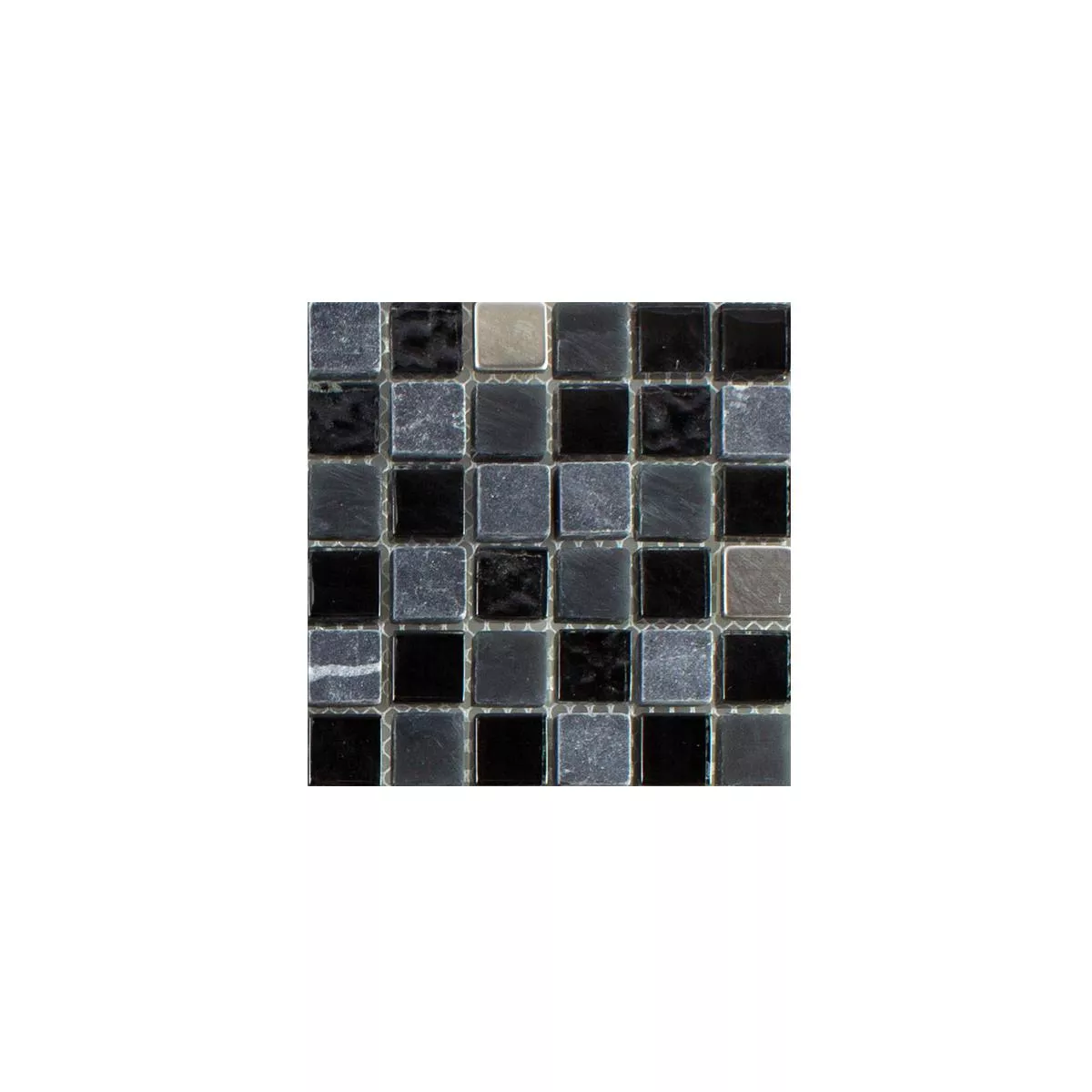 Muestra Cristal Piedra Natural Acero Inoxidable Mosaico Kosovo Negro Plateado