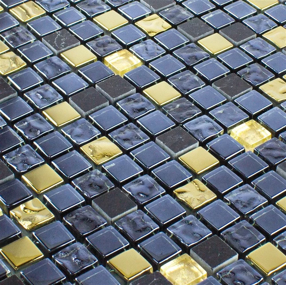 Muestra Cristal Piedra Natural Azulejos De Mosaico Cooktown Negro Oro