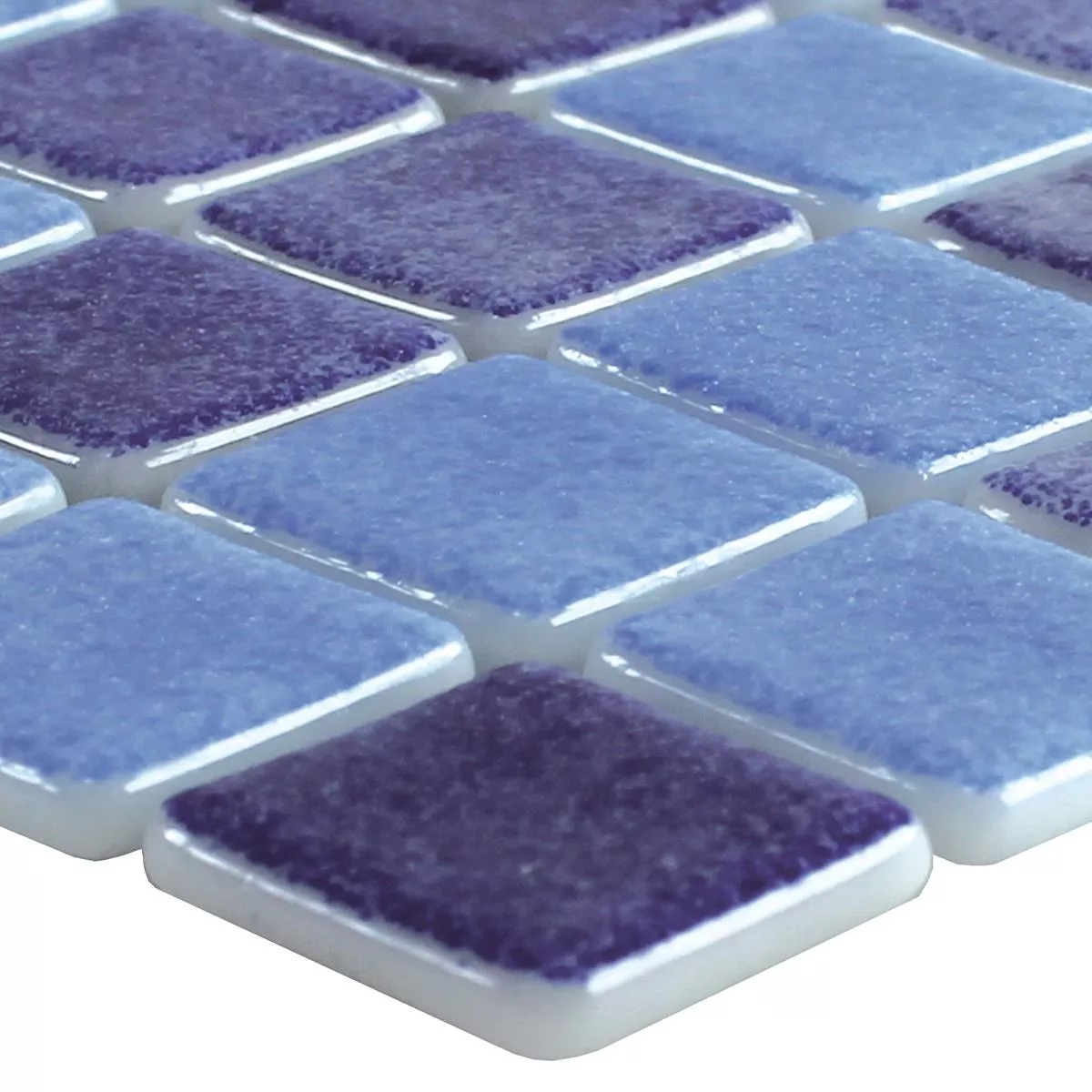 Los mosaicos de vidrio de la serie Antonio son ideales para cuartos húmedos. Además de su uso en la piscina, también son adecuados para la piscina. Las baldosas de vidrio son brillantes en la superficie y resaltan los grandes colores. Los azulejos están disponibles en los colores azul oscuro, azul claro, azul cielo, turquesa, blanco y azul mixto. Entonces, hay algo para todos los que les gusta embellecer su piscina o la piscina. Todos los colores crean la típica sensación de piscina.