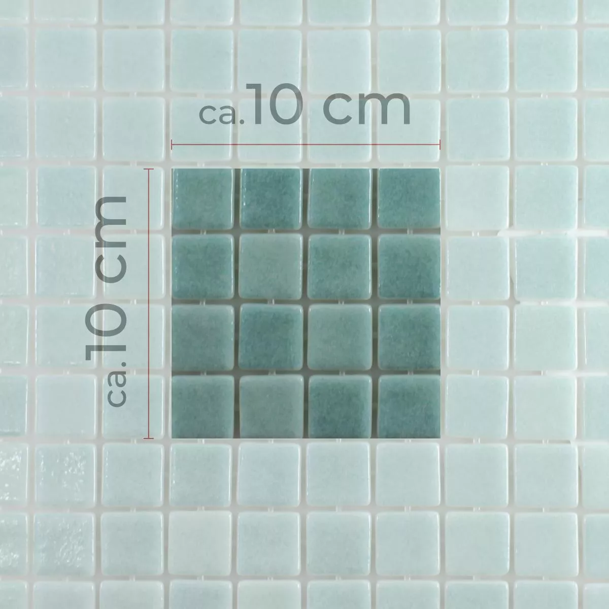 Estos elegantes mosaicos de vidrio son perfectos para áreas húmedas como piscinas y piscinas. Los azulejos brillan muy bien en el agua y siguen siendo antideslizantes y están diseñados para uso en interiores. Las losetas de vidrio se pegan individualmente a una estera de soporte. Esto facilita la colocación incluso en lugares difíciles. Las distancias se ajustan y se pueden aplicar grandes cantidades de baldosas al mismo tiempo. Las placas en sí son fáciles de separar, de modo que las piezas individuales de loseta se pueden separar y procesar en áreas más pequeñas. Cada ficha individual es cuadrada. Esto crea un hermoso patrón en el suelo o en el Beckerman.