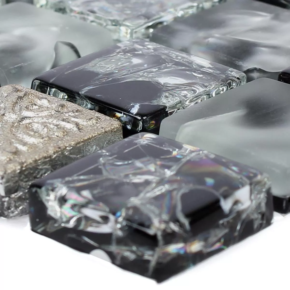Muestra Cristal Resina Azulejos De Mosaico Bogardus Negro Mezcla
