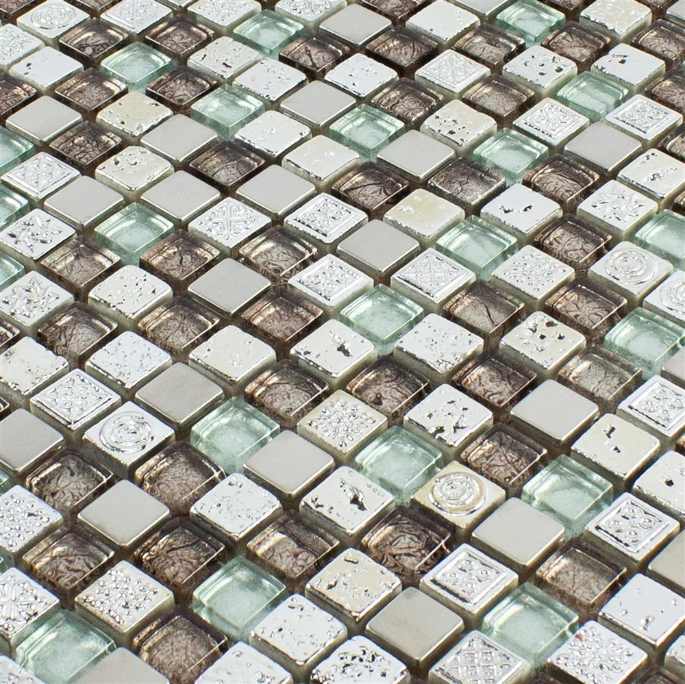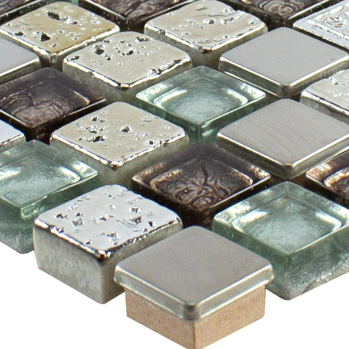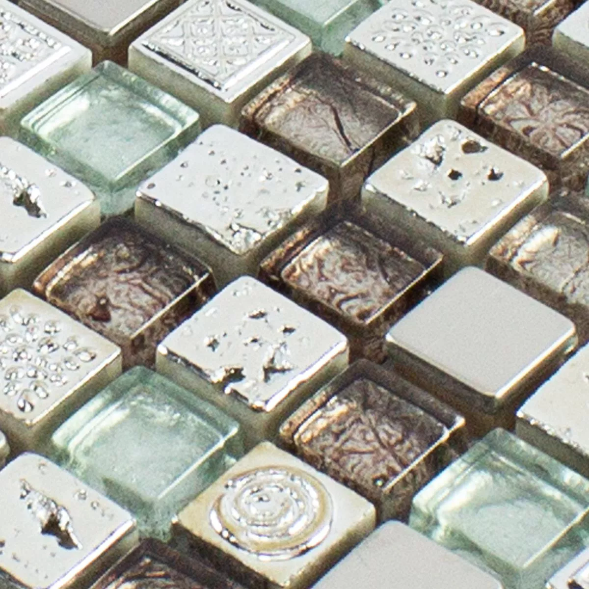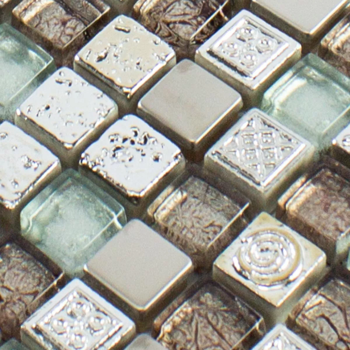 Muestra Cristal Resina Metal Azulejos De Mosaico Falco Marrón Plateado
