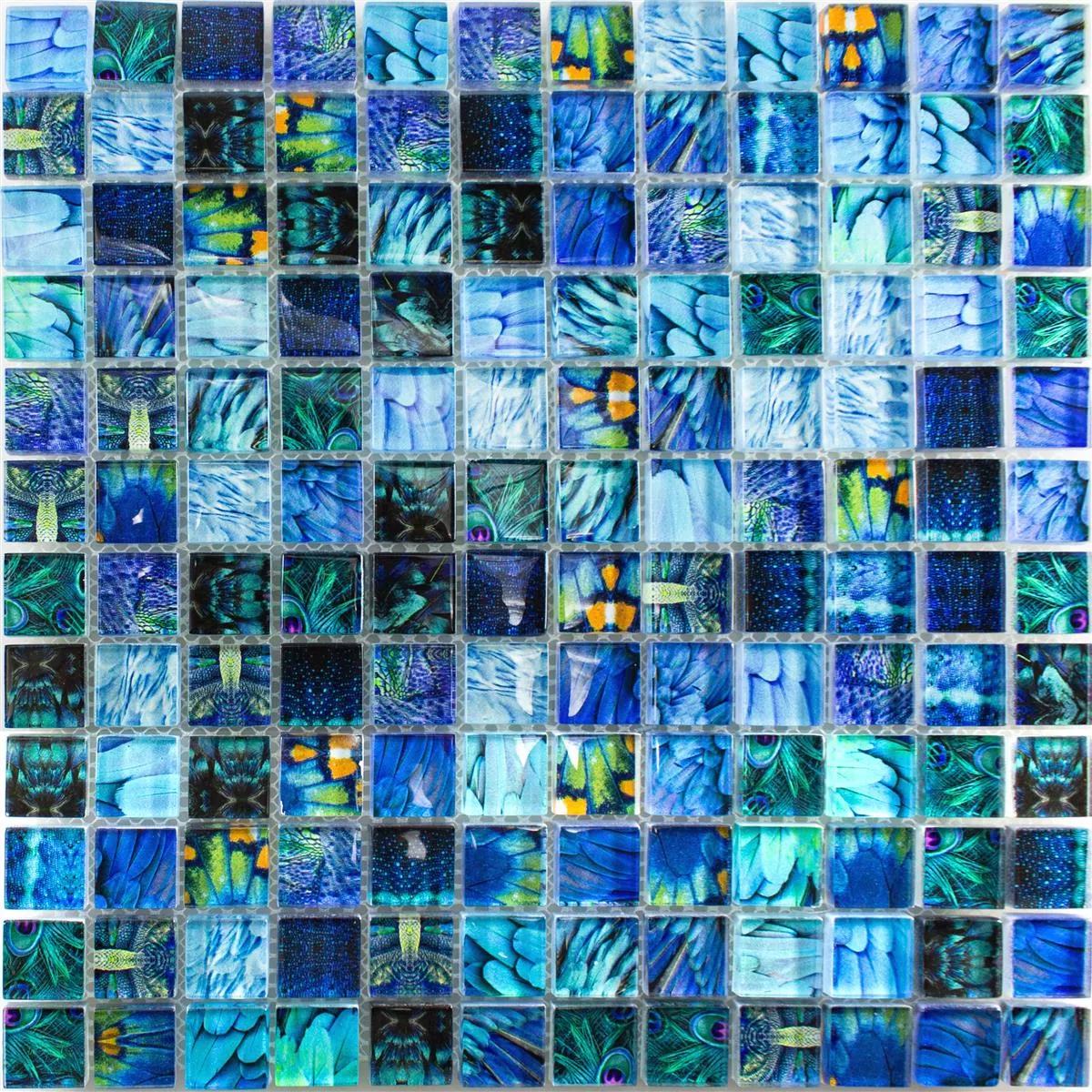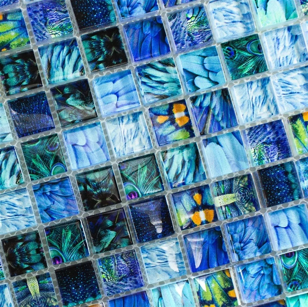 Muster von Glasmosaik Fliesen Peafowl Blau 23