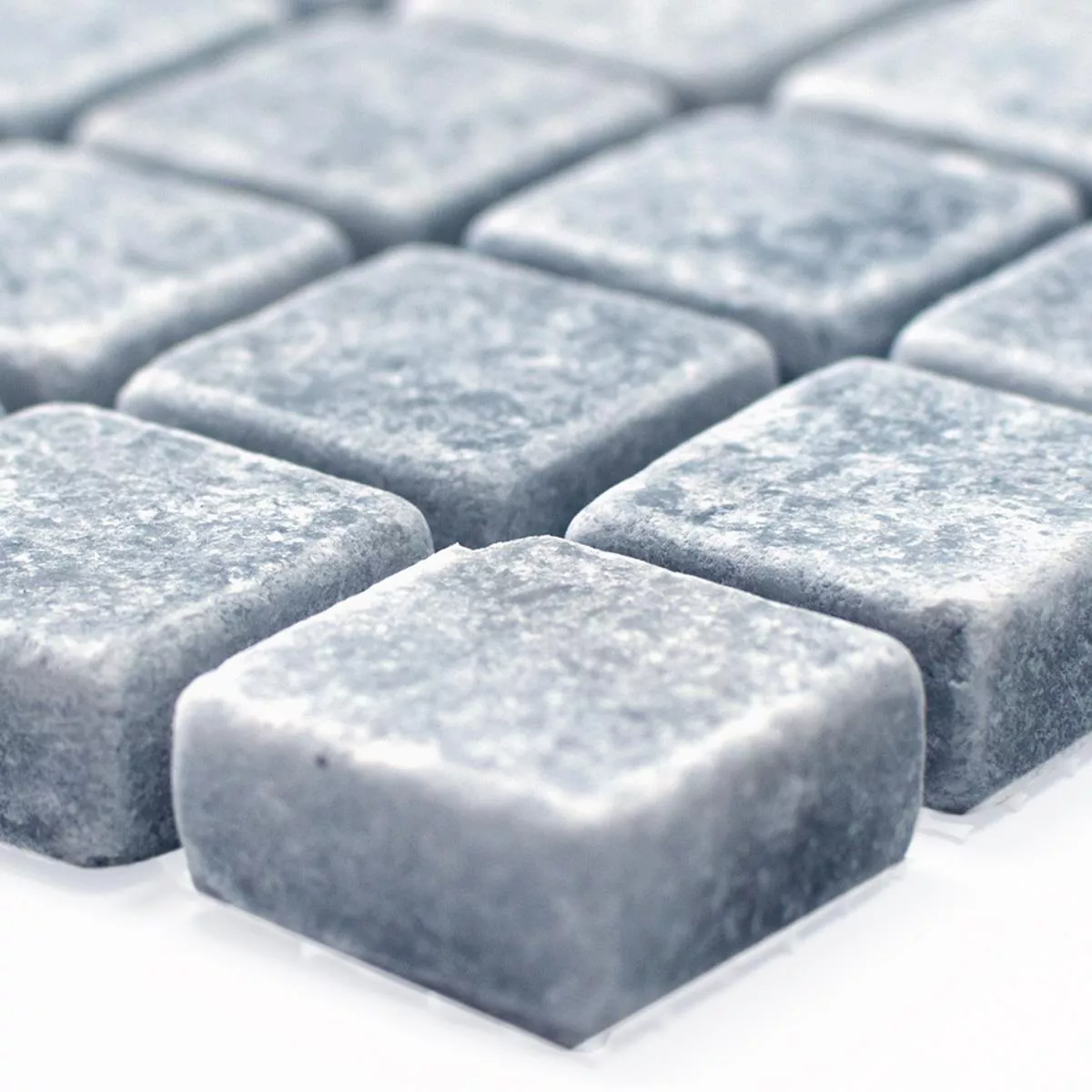 Es habitual que las baldosas de piedra natural Bardiglio presenten algunas vetas superficiales secas de aspecto blanco. La fábrica utiliza un epoxi fluido para llenar estas vetas durante la producción.