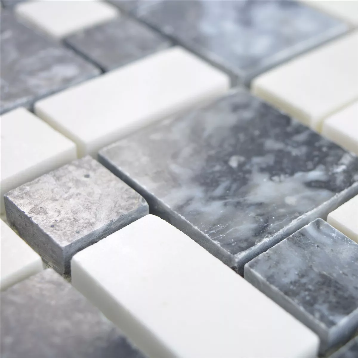 La baldosa de mármol de piedra natural Córdoba en color blanco y negro ofrece un aspecto noble. Las baldosas de piedra natural son atemporales y se consideran muy fáciles de cuidar.