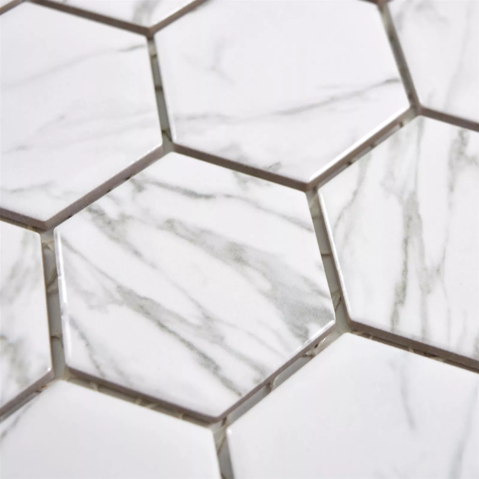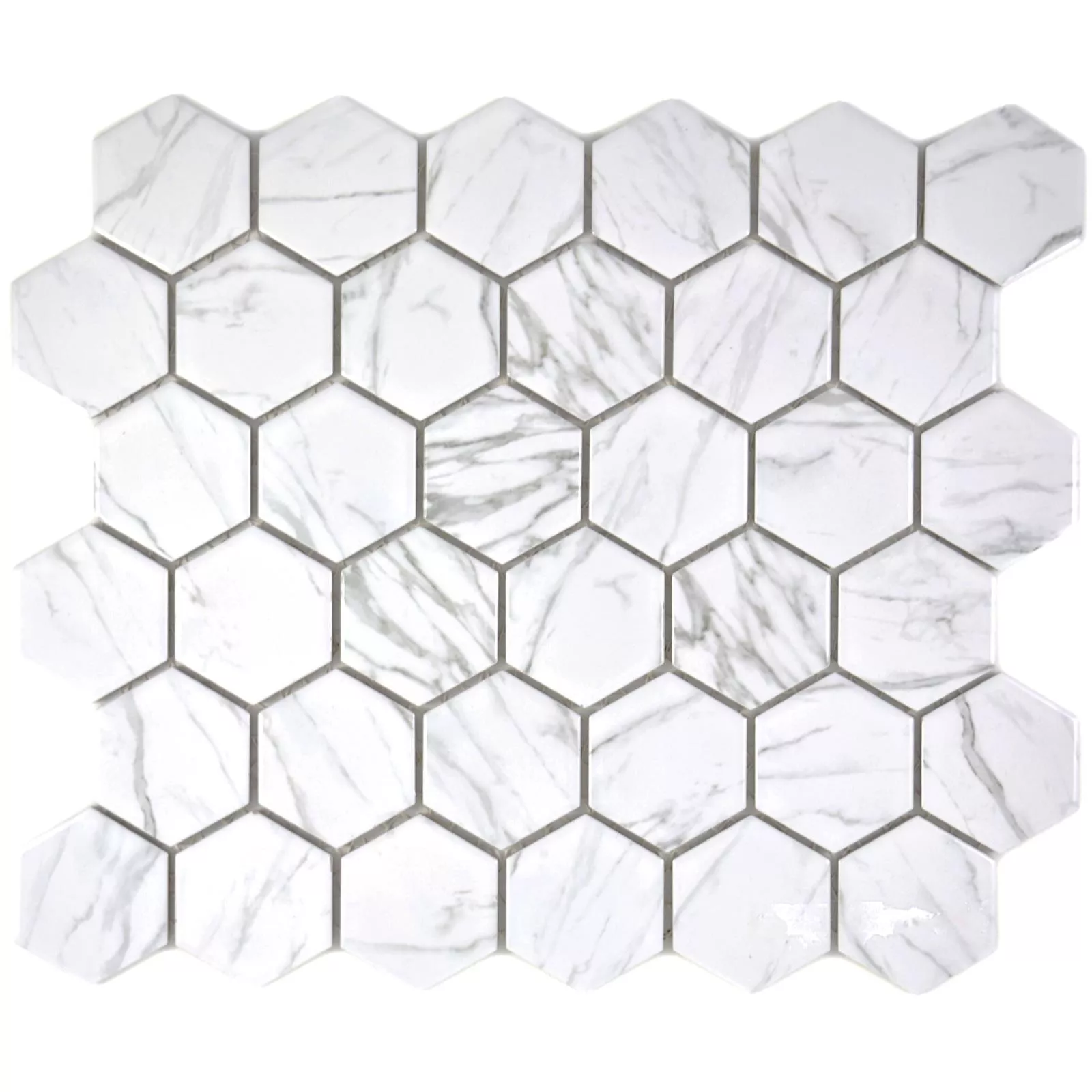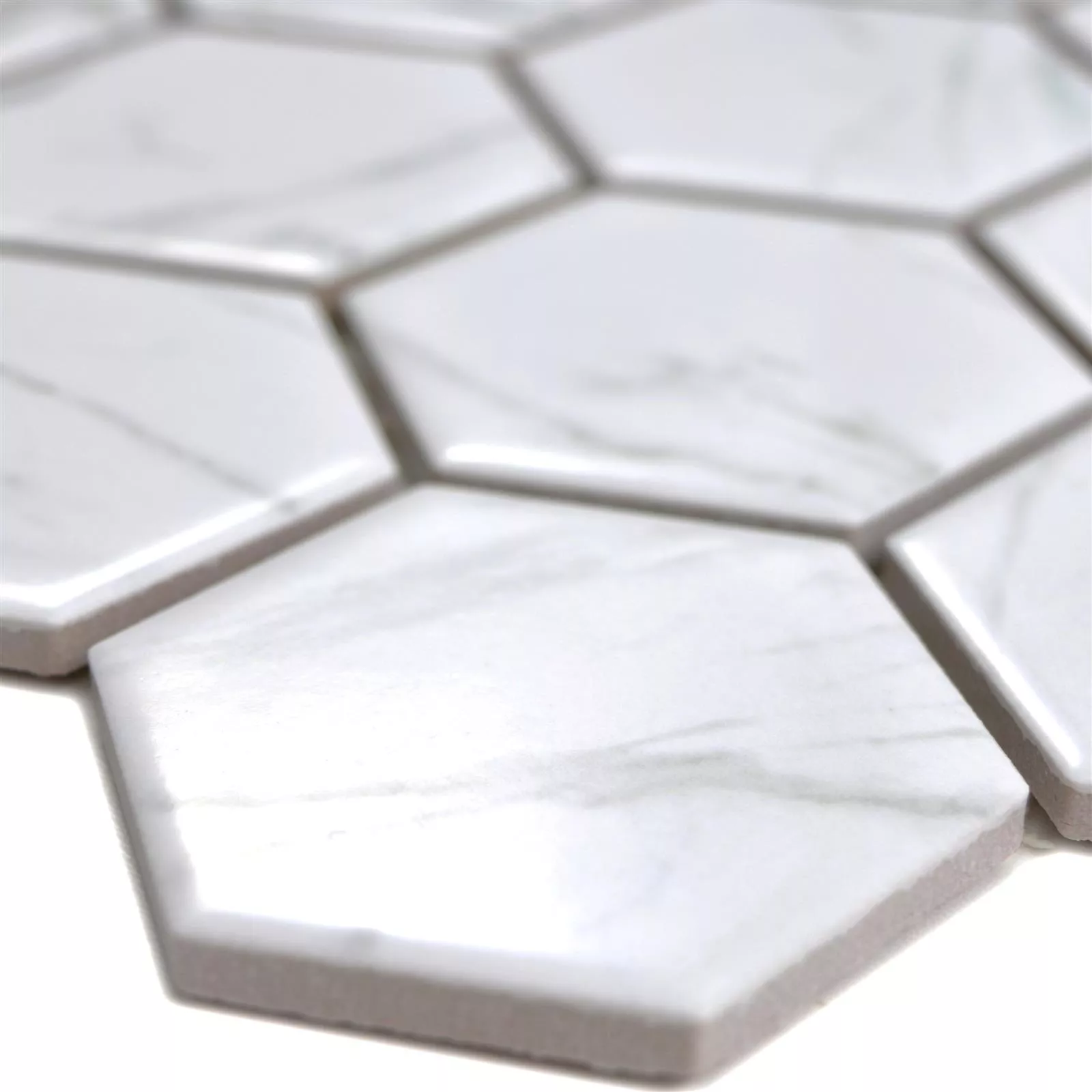Muestra Mosaico Cerámico Mozart Hexagonales Blanco Brillante