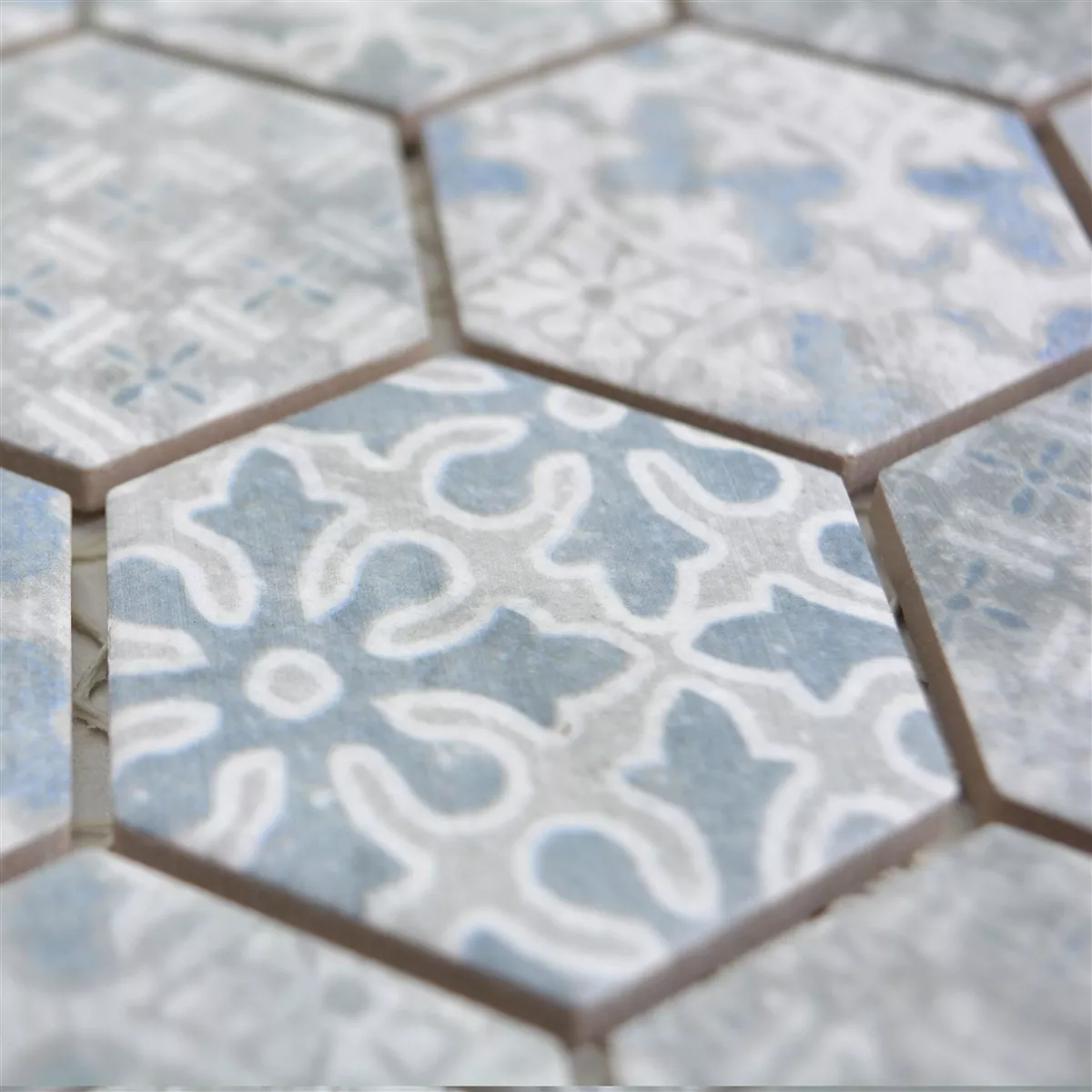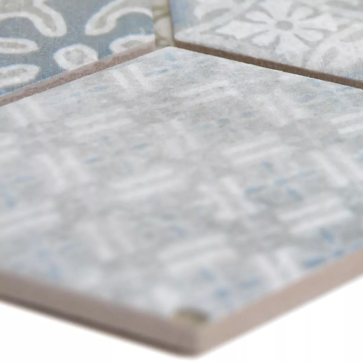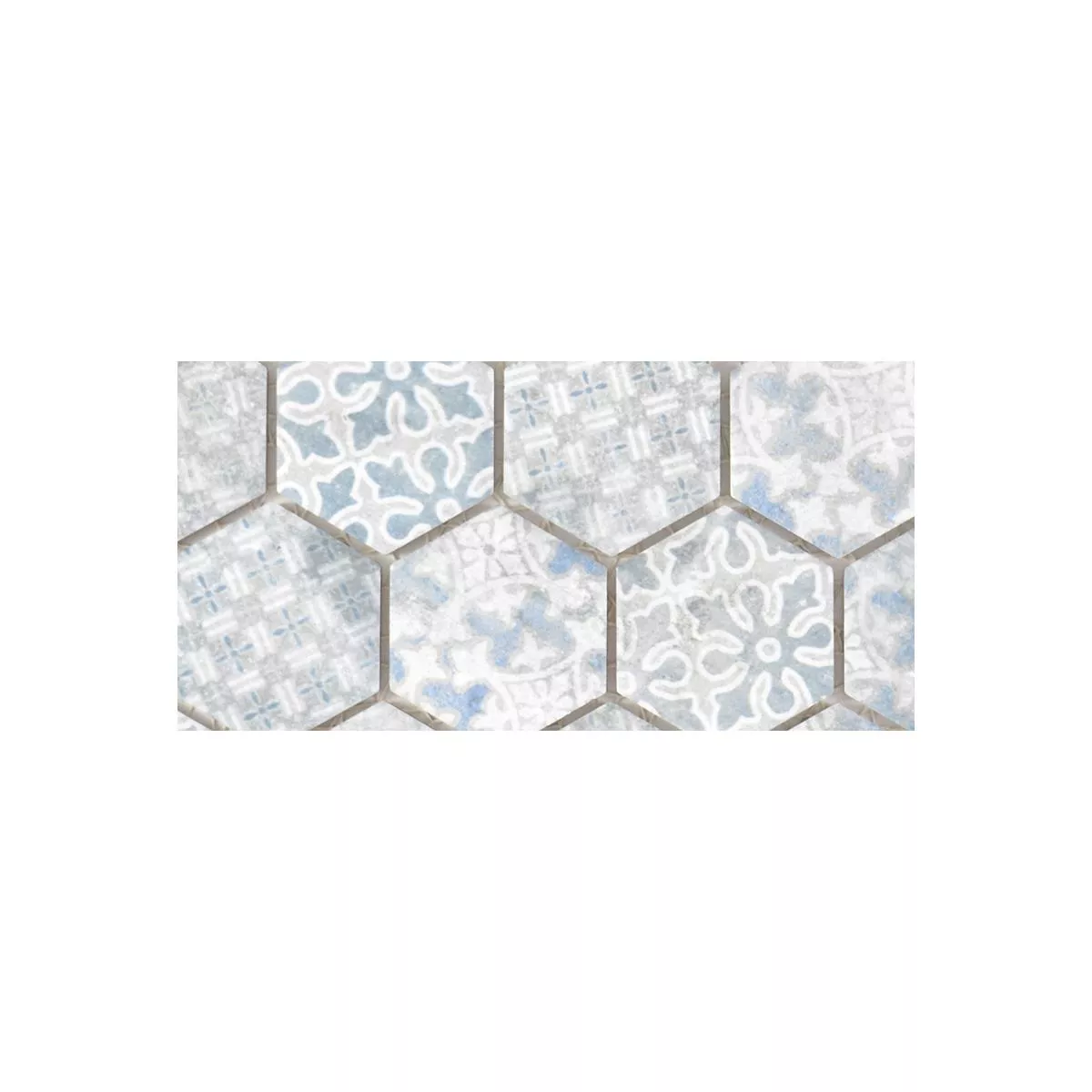 Muestra Mosaico Cerámico Retro Azulejos Lawinia Hexagonales Azul