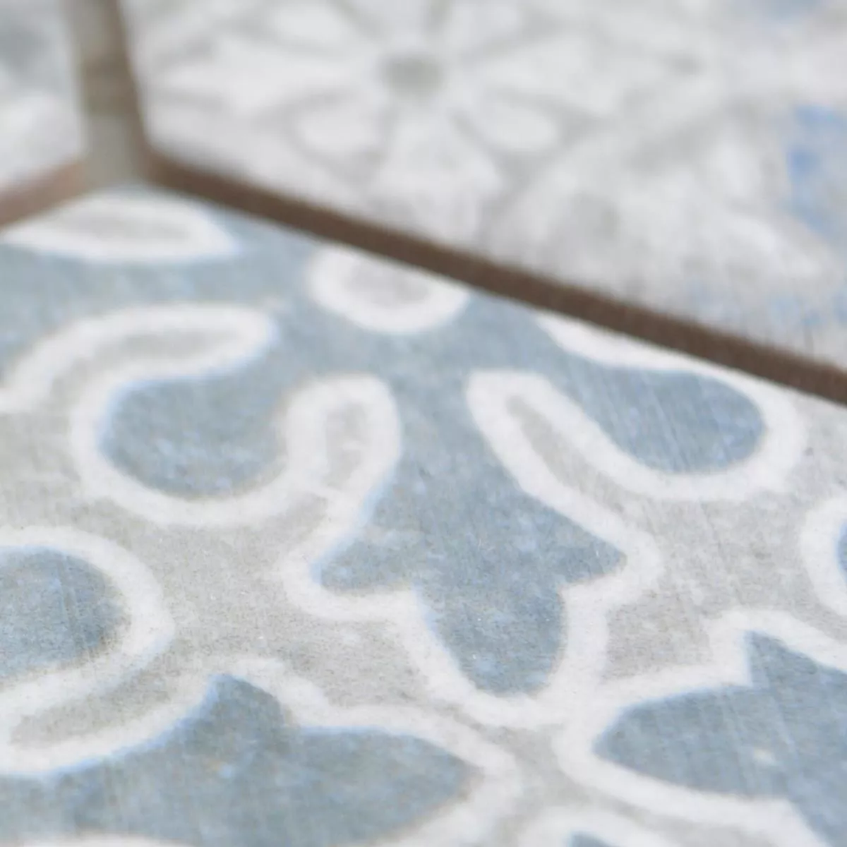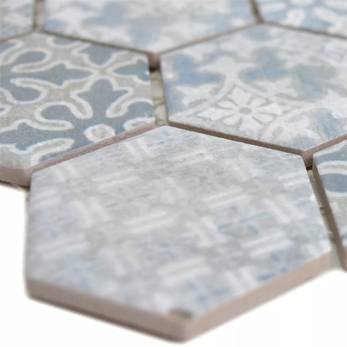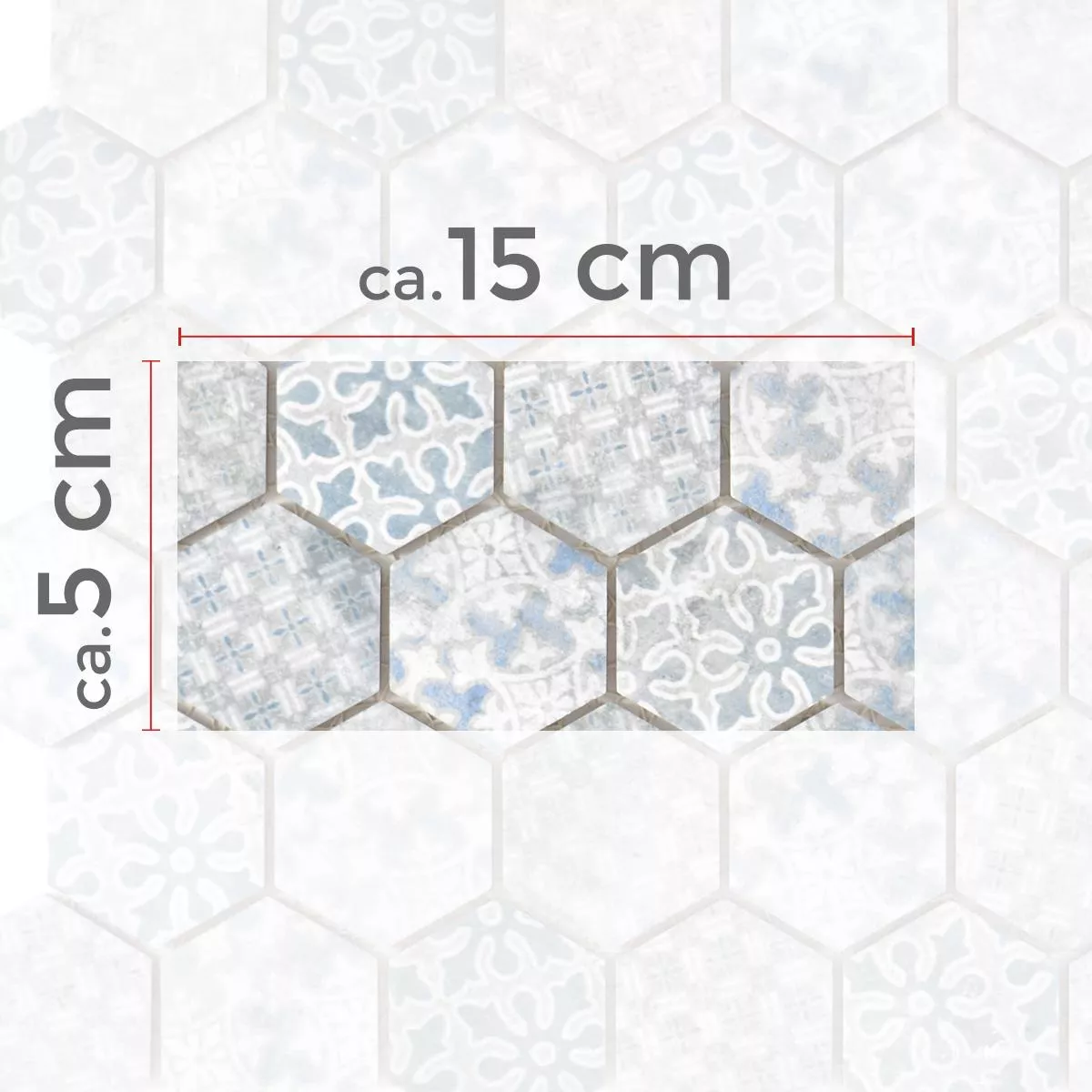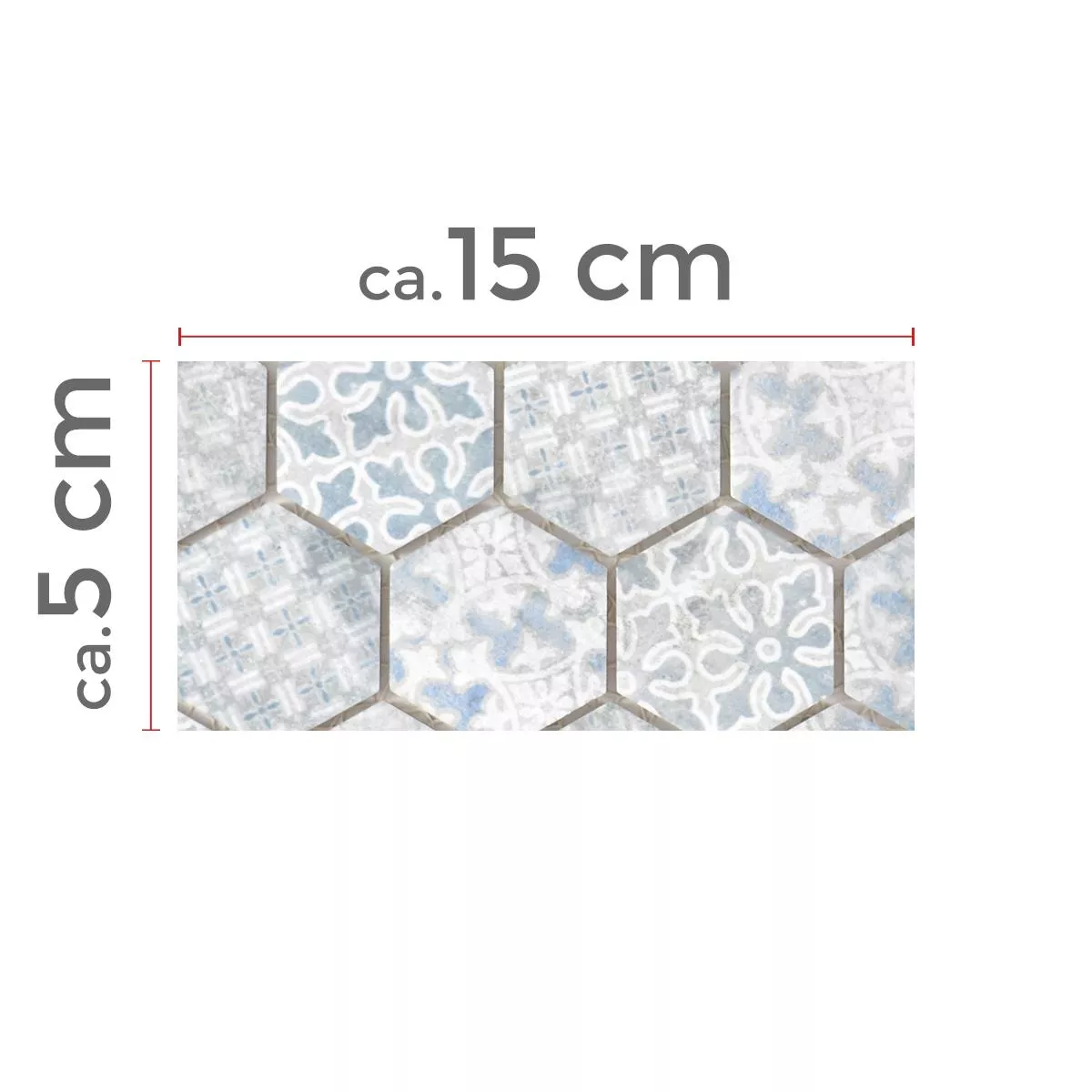 Muestra Mosaico Cerámico Retro Azulejos Lawinia Hexagonales Azul