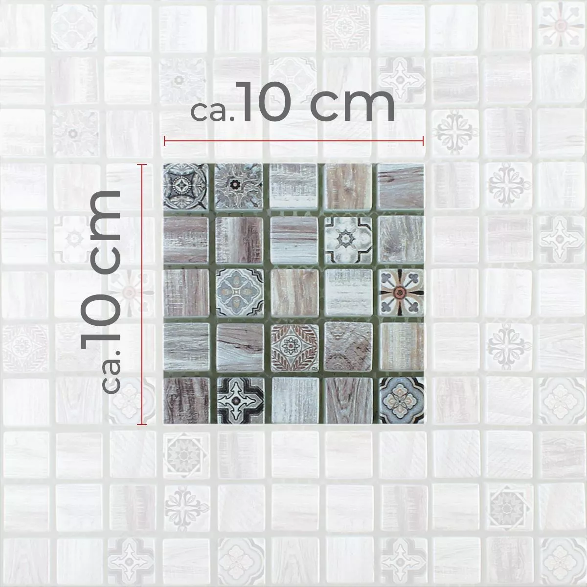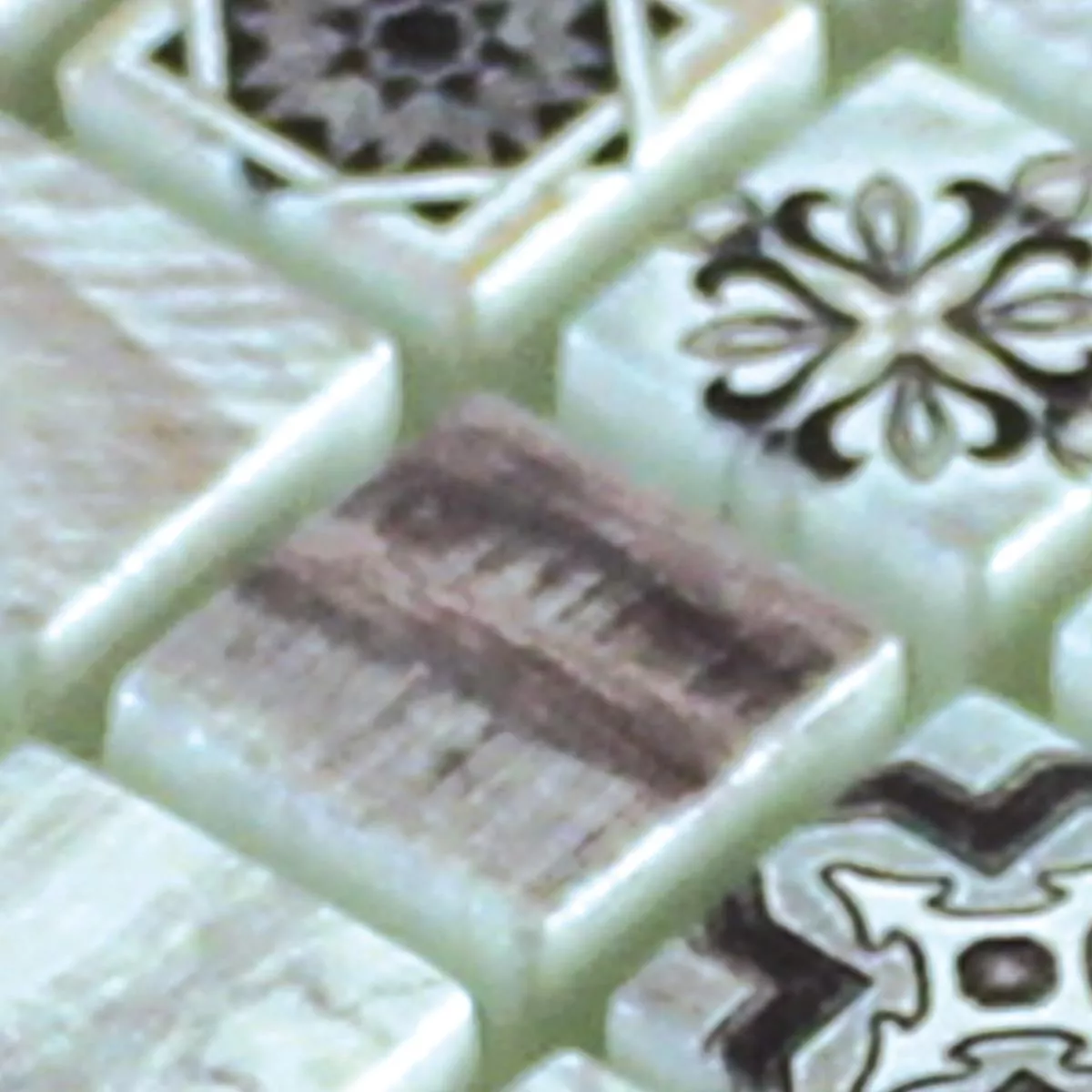 El azulejo con aspecto de madera Vision está hecho de vidrio. La pequeña piedra de forma cuadrada tiene un tamaño de 15 x 15 milímetros y un grosor de 8 milímetros. Su superficie tiene un brillo mate natural y se caracteriza por una estructura uniforme. La baldosa con aspecto de madera de la serie Vision también se puede limpiar y mantener de forma rápida y sencilla. El azulejo con aspecto de madera está cuidadosamente pegado a finas esteras, lo que facilita la colocación.