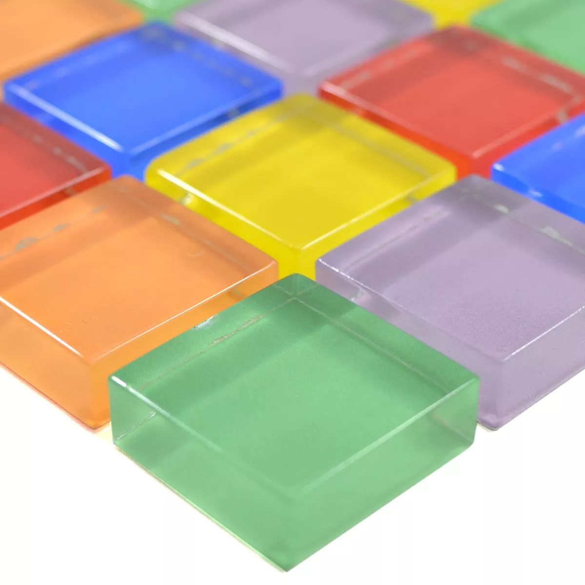 Además de la colorida selección de colores, la superficie brillante es un verdadero punto de atracción y le da a la habitación un toque elegante. Dependiendo de la incidencia de la luz, la intensidad del color de las piedras individuales cambia. Gracias a los colores brillantes y la superficie de vidrio, estos azulejos son fáciles de cuidar. Debido a esta propiedad de fácil cuidado, este azulejo aún se ve como nuevo incluso después de muchos años.