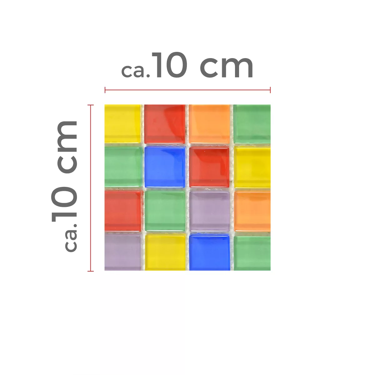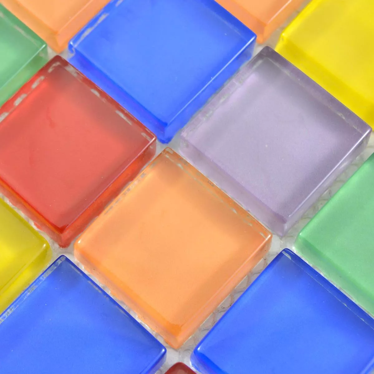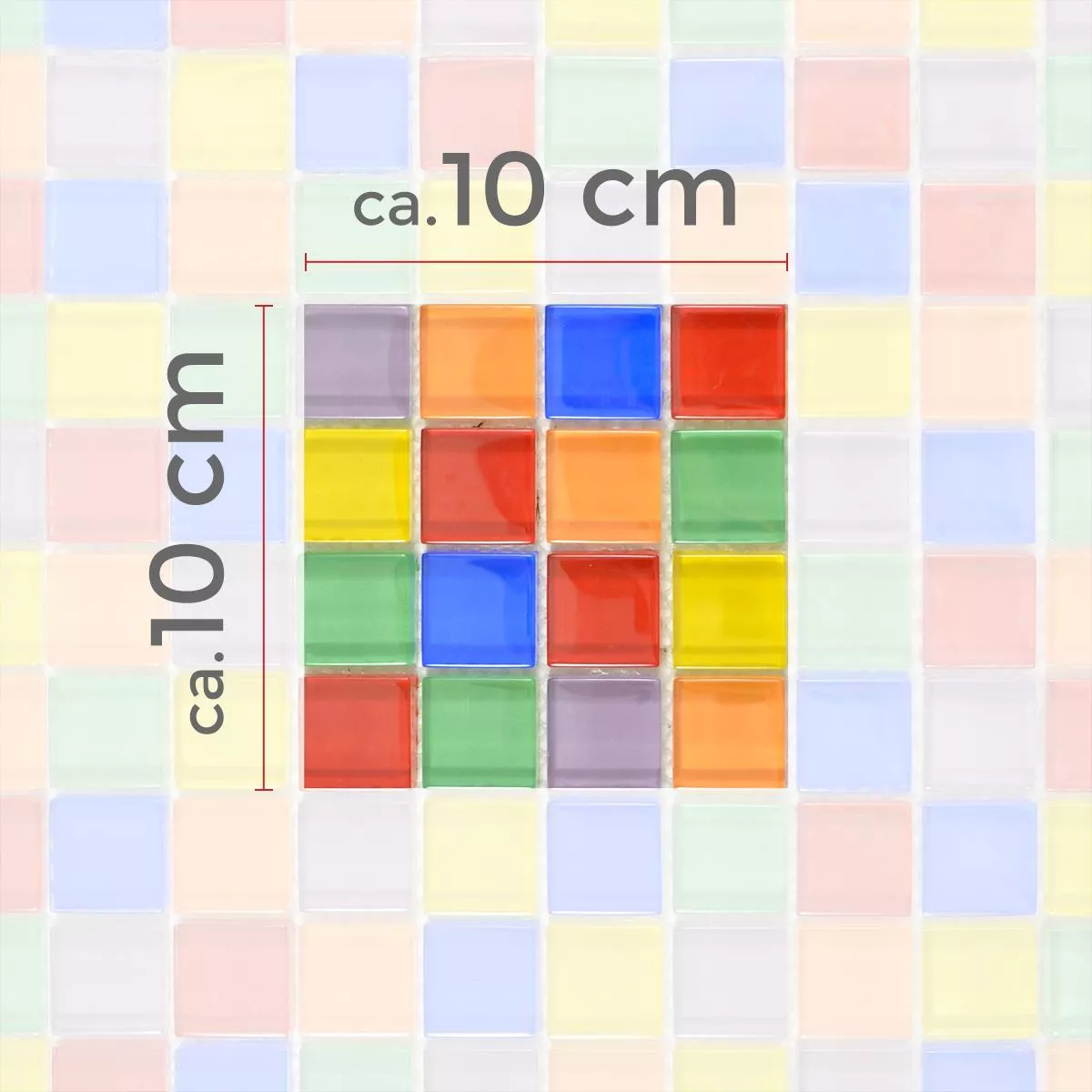 Estos coloridos mosaicos de vidrio se pueden usar como detalles en una habitación sencilla. Especialmente en baños y cocinas monocromáticos, incluso una franja estrecha transforma toda la habitación. Los mosaicos de vidrio Ararat Bunt son el punto culminante de cada habitación. Los colores de las piedras de mosaico individuales son azul, amarillo, verde, rojo, naranja y un tono lila claro. La colorida mezcla de colores le da a este mosaico de vidrio un patrón de superficie interesante.