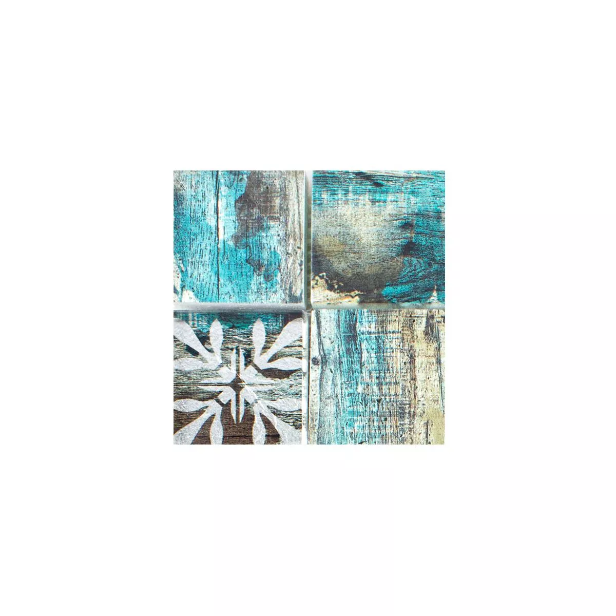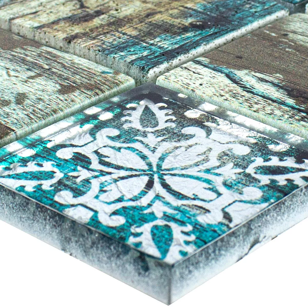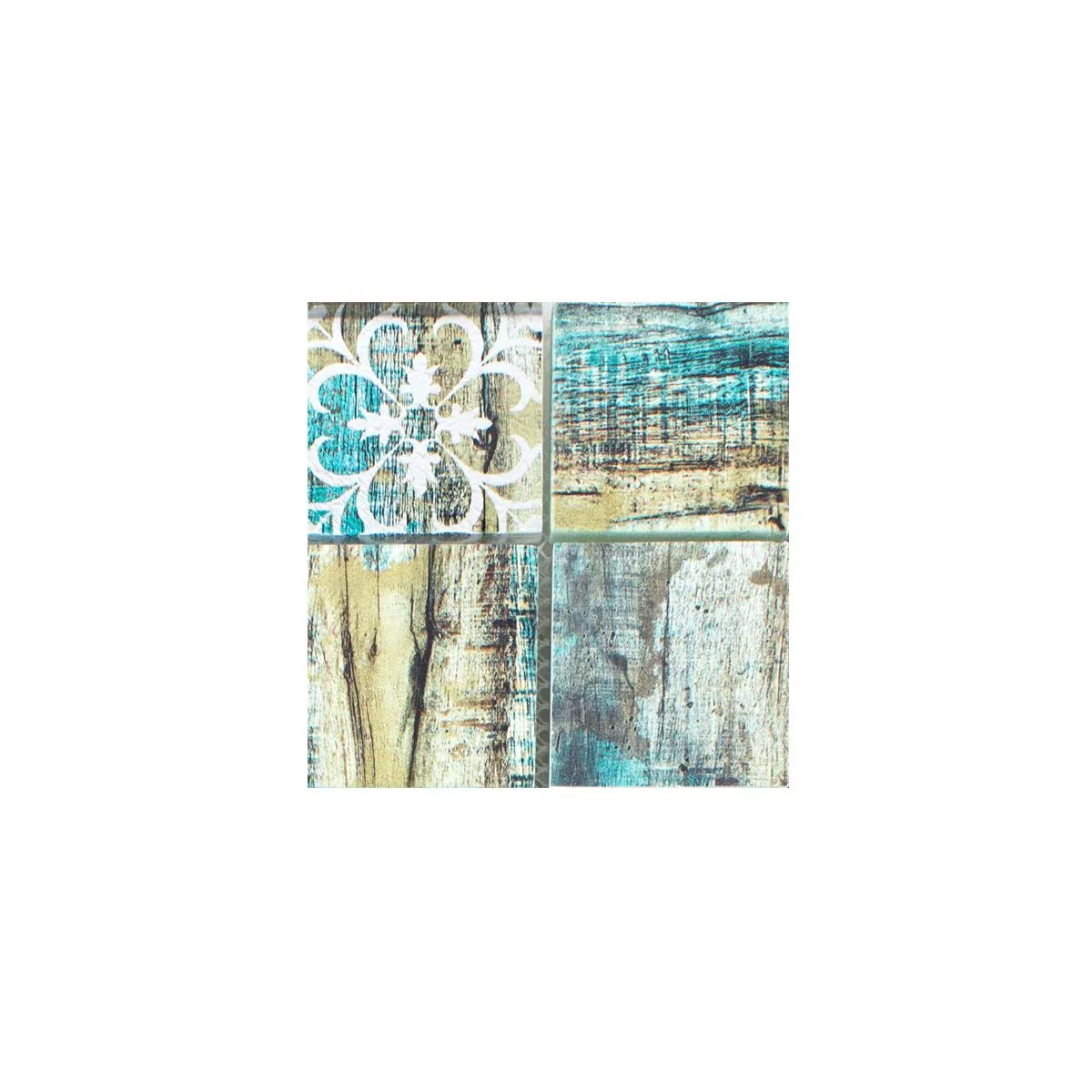 Muestra Mosaico de Cristal Azulejos Aspecto de Madera Howland Beige Verde Q48
