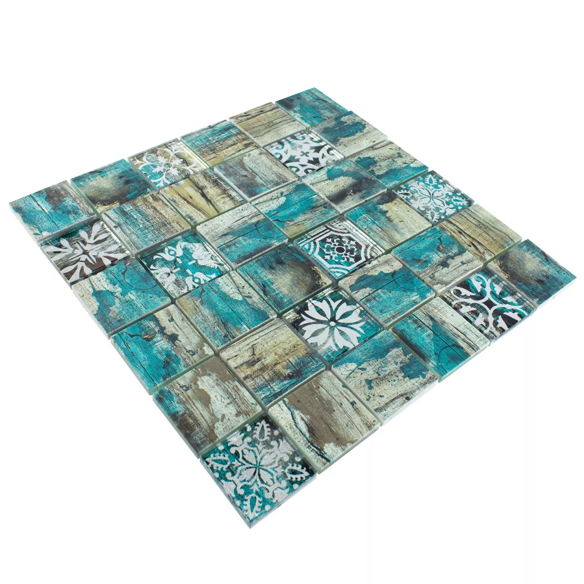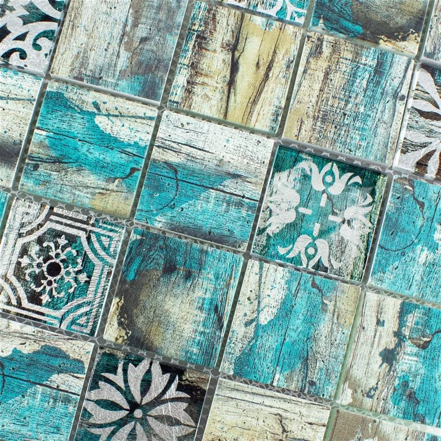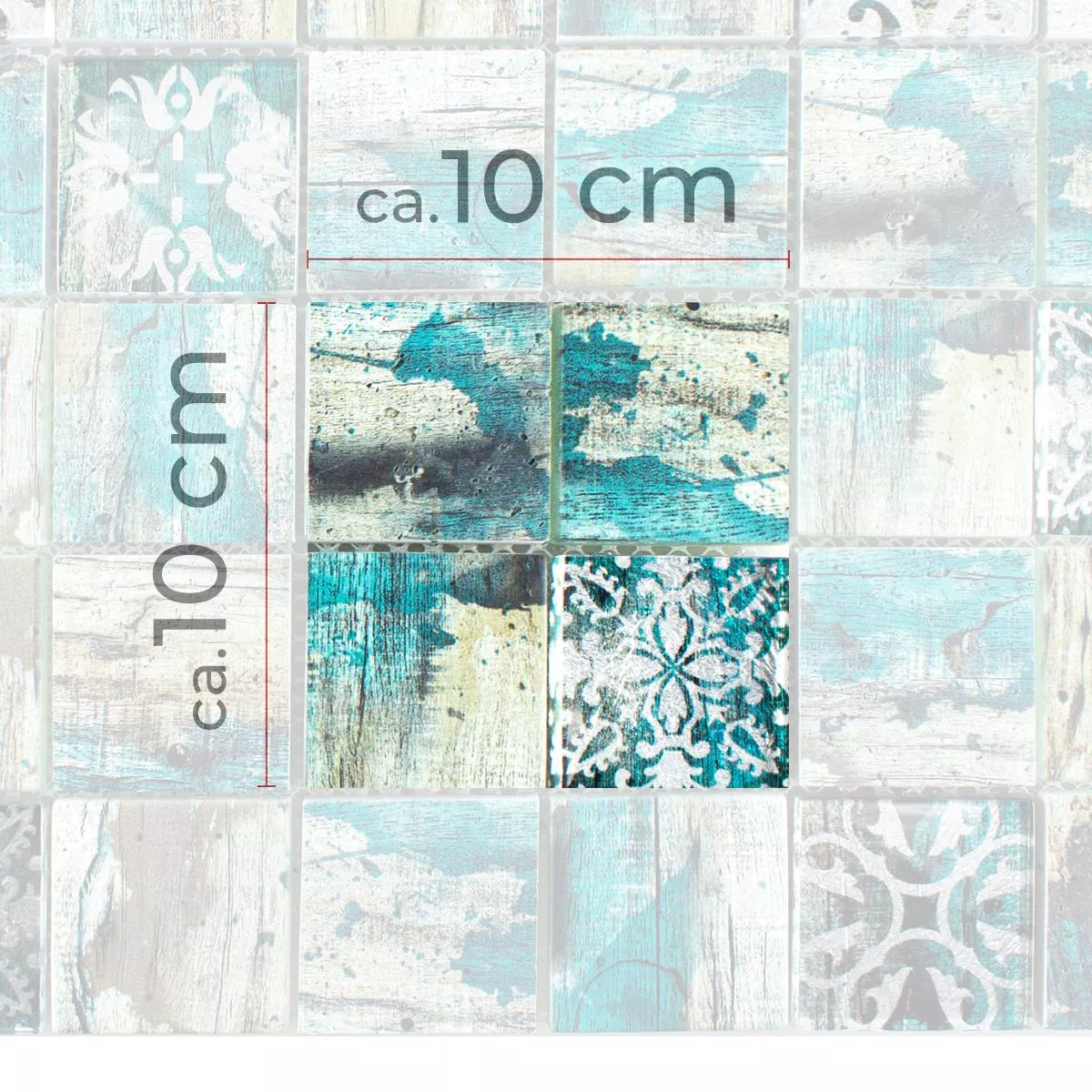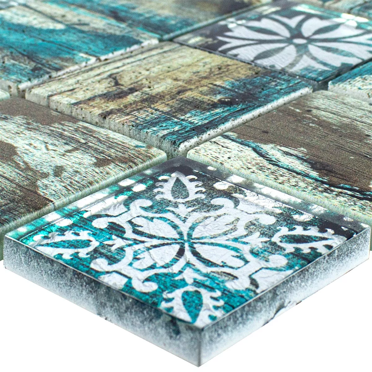 Muestra Mosaico de Cristal Azulejos Aspecto de Madera Howland Beige Verde Q48